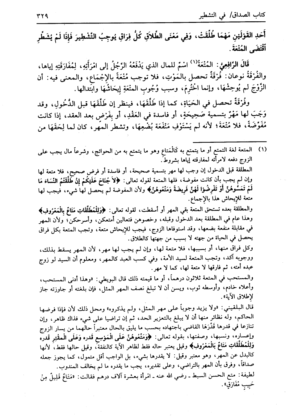 (¬1) المتعة لغة التمتع أو ما يتمتع به كَالْمَتاعِ وهو ما يتمتع به من الحوائج، وشرعاً مال يجب على الزوج دفعه لامرأته لمفارقته إياها بشروط.