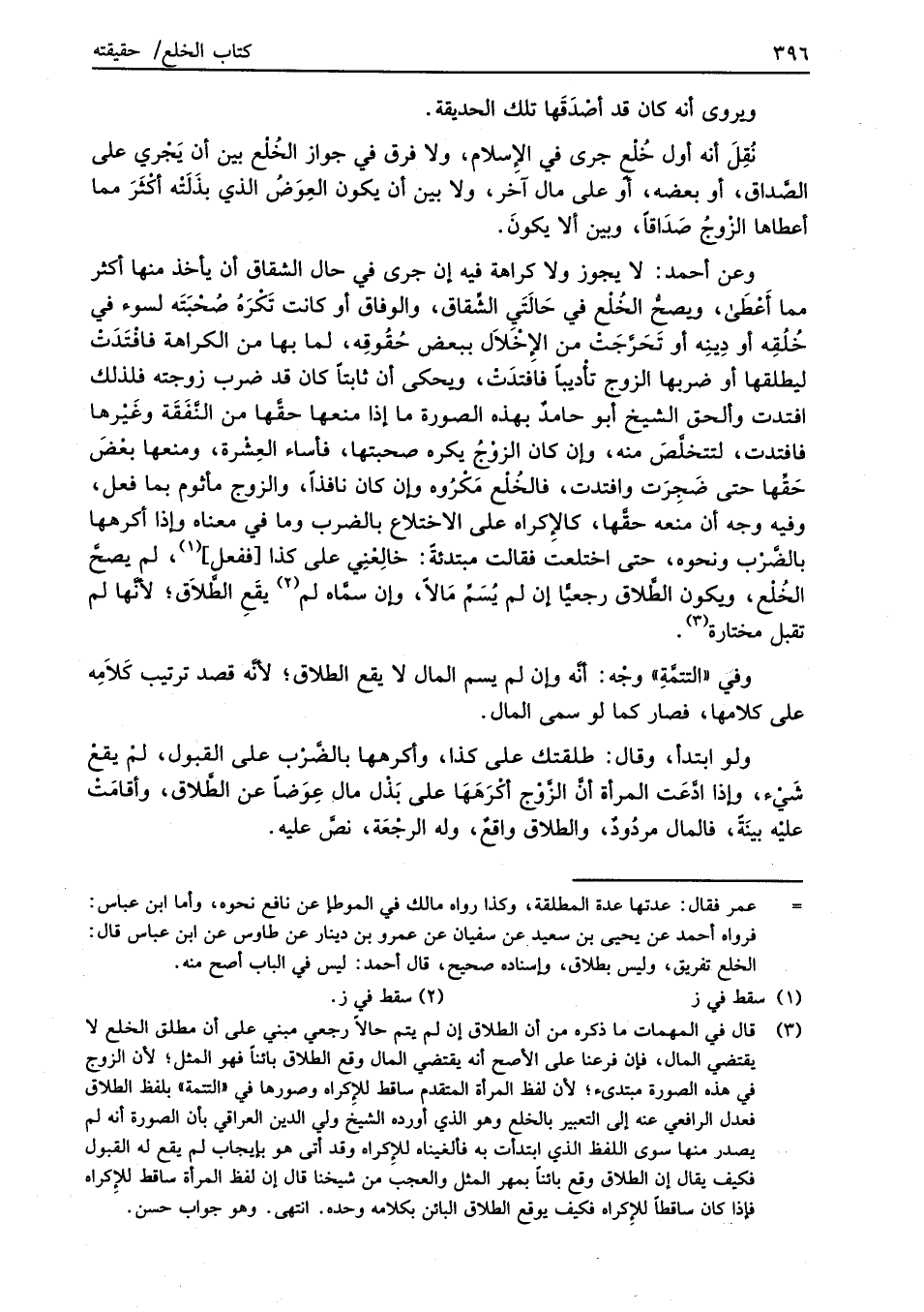 وعن أحمد: لا يجوز ولا كراهة فيه إن جرى في حال الشقاق أن يأخذ منها أكثر مما أَعْطَى، ويصحُّ الخُلْع في حَالَتَي الشِّقاق، والوفاق أو كانت تَكْرَهُ صُحْبَتَه لسوء في خُلُقِه أو دِينِه أو تَحَرَّجَتْ من الإِخْلاَل ببعض حُقُوقِه، لما بها من الكراهة فافْتَدَتْ ليطلقها أو ضربها الزوج تأْديباً فافتدَتْ، ويحكى أن ثابتاً كان قد ضرب زوجته فلذلك افتدت وألحق الشيخ أبو حامدٌ بهذه الصورة ما إذا منعها حقَّها من النَّفَقَة وغَيْرها فافتدت، لتتخلَّص منه، وإن كان الزوْجُ يكره صحبتها، فأساء العِشْرة، ومنعها بعْضَ حَقِّها حتى ضَجِرَت وافتدت، فالخُلْع مَكْرُوه وان كان نافذاً، والزوج مأثوم بما فعل، وفيه وجه أن منعه حقَّها، كالإِكراه على الاختلاع بالضرب وما في معناه وإذا أكرهها بالضَّرْب ونحوه، حتى اختلعت فقالت مبتدئةً: خالِعْنِي على كذا [ففعل] (¬1)، لم يصحَّ الخُلْع، ويكون الطَّلاق رجعيَّاً إن لم يُسَمِّ مَالاً، وإن سمَّاه لم (¬2) يقَعِ الطَّلاَق؛ لأنَّها لم تقبل مختارة (¬3).