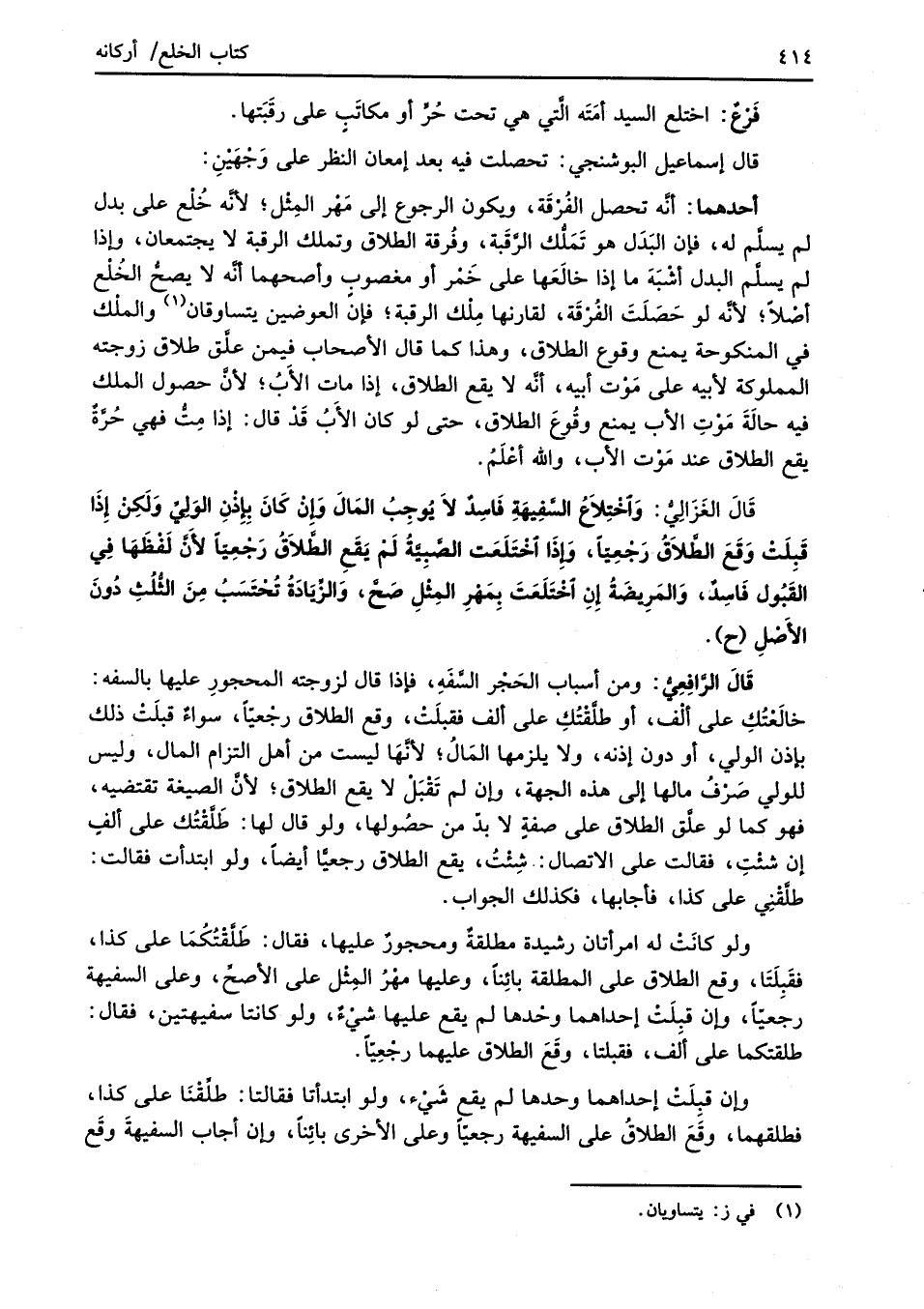 قَالَ الغَزَالِيُّ: وَاخْتِلاَعُ السَّفِيهَةِ فَاسِدٌ لاَ يُوجِبُ المَالَ وإِنْ كَانَ بِإِذْنِ الوَلِيِّ وَلَكِنْ إِذَا قَبِلَتْ وَقَعَ الطَّلاَقُ رَجْعِيّاً، وَإِذَا اخْتَلَعَت الصَّبِيَّةُ لَمْ يَقَعِ الطَّلاَقُ رَجْعِيّاً لأَنَّ لَفْظَهَا فِي القَبُول فَاسِدٌ، وَالمَرِيضَةُ إِنِ اخْتَلَعَتَ بِمَهْرِ المِثْلِ صَحَّ، وَالزِّيَادَةُ تُحْتَسَبُ مِنَ الثُّلُثِ دُونَ الأَصْلِ (ح).