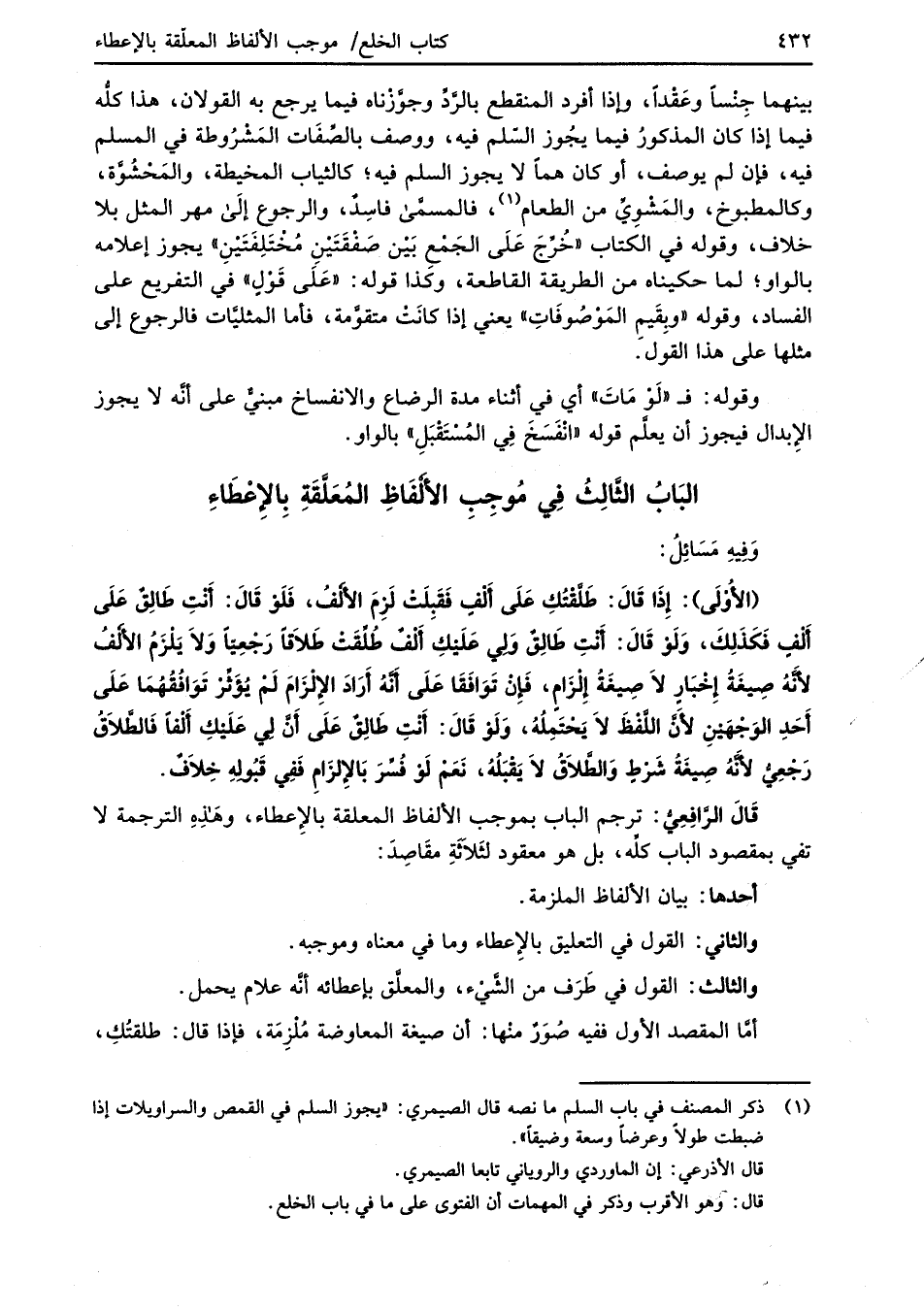 البَابُ الثَّالِثُ في مُوجِبِ الأَلْفَاظِ المُعَلَّقَةِ بِالإِعْطَاءِ