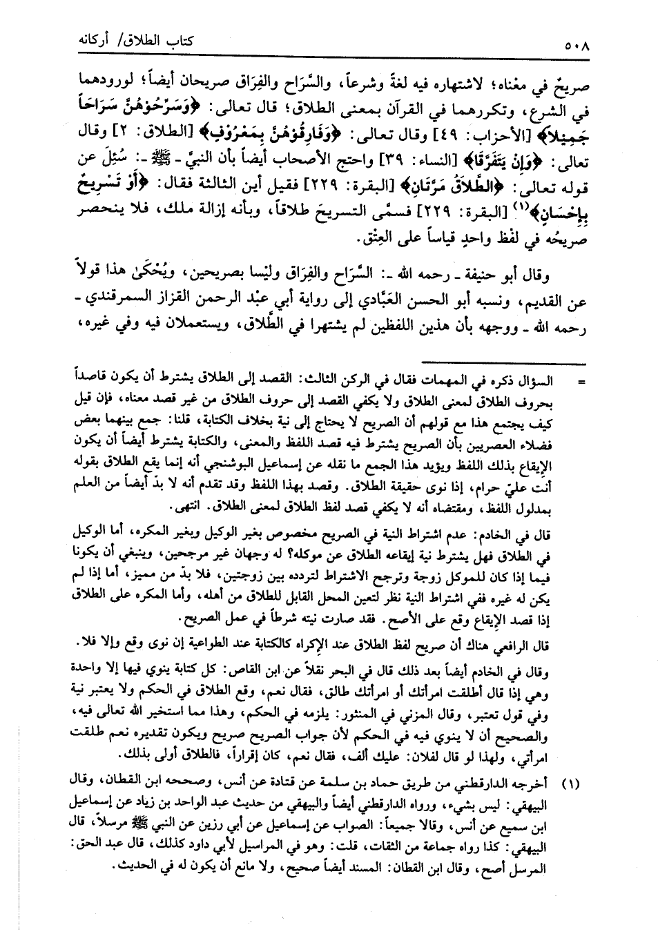 وقال أبو حنيفة -رحمه الله-: السَّرَاح والفِرَاق وليْسا بصريحين، ويُحْكَى هذا قولاً عن القديم، ونسبه أبو الحسن العَبَّادي إلى رواية أبي عبْد الرحمن القزاز السمرقندي -رحمه الله- ووجهه بان هذين اللفظين لم يشتهرا في الطَّلاق، ويستعملان فيه وفي غيره،