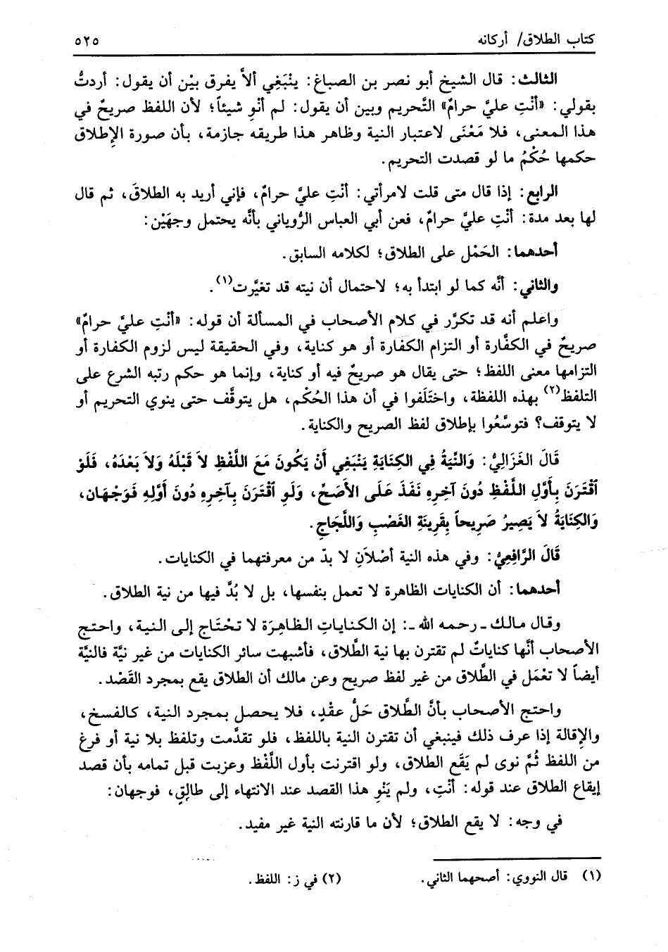 واعلم أنه قد تكرَّر في كلام الأصحاب في المسألة أن قوله: "أنْتِ عليَّ حرامٌ" صريحٌ في الكفَّارة أو التزام الكفارة أو هو كناية، وفي الحقيقة ليس لزوم الكفارة أو التزامها معنى اللفظ؛ حتى يقال هو صريحٌ فيه أو كناية، وإنما هو حكم رتبه الشرع على التلفظ (¬2) بهذه اللفظة، واختَلَفوا في أن هذا الحُكْم، هل يتوقَّف حتى ينوي التحريم أو لا يتوقف؟ فتوسَّعُوا باطلاق لفظ الصريح والكناية.