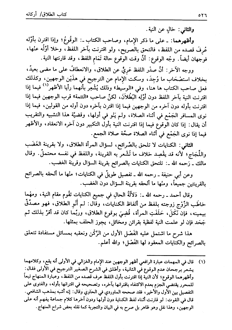 هذا شرح ما اشتمل عليه الفَصْل الأول من الرُّكن ونعقبه بمسائل مستفادة تتعلق بالصرائح والكنايات المعقود لها الفَصْل؛ والله أعلم.