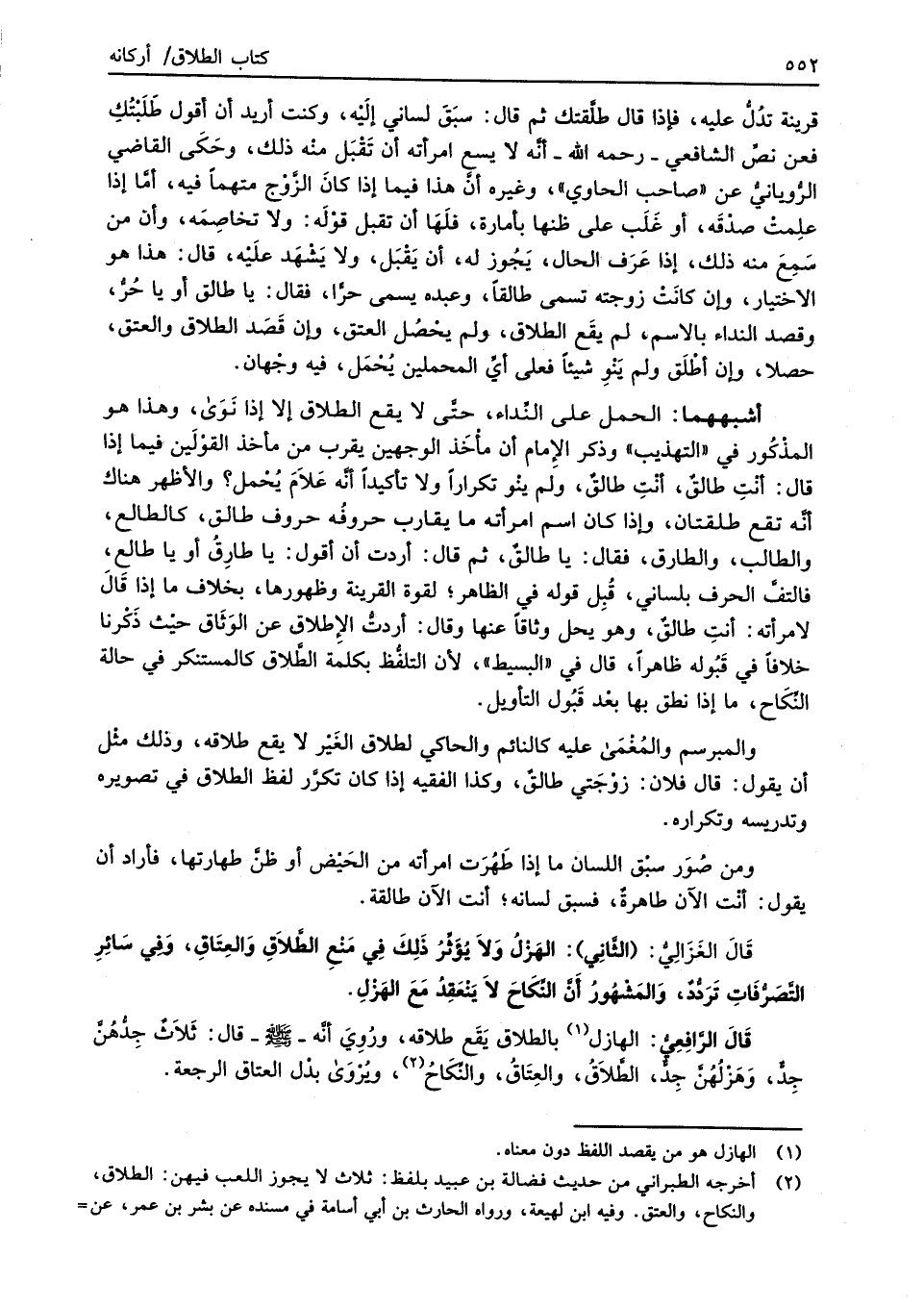 قَالَ الرَّافِعِيُّ: الهازل (¬1) بالطلاق يَقَع طلاقه، ورُوِيَ أنَّه -صلى الله عليه وسلم- قال: ثَلاَثٌ جِدُّهُنَّ جِدٌّ، وَهَزْلُهُنَّ جِدُّ، الطَّلاَقُ، والعِتَاقُ، والنِّكَاحُ (¬2)، وُيرْوَى بدْل العتاق الرجعة.