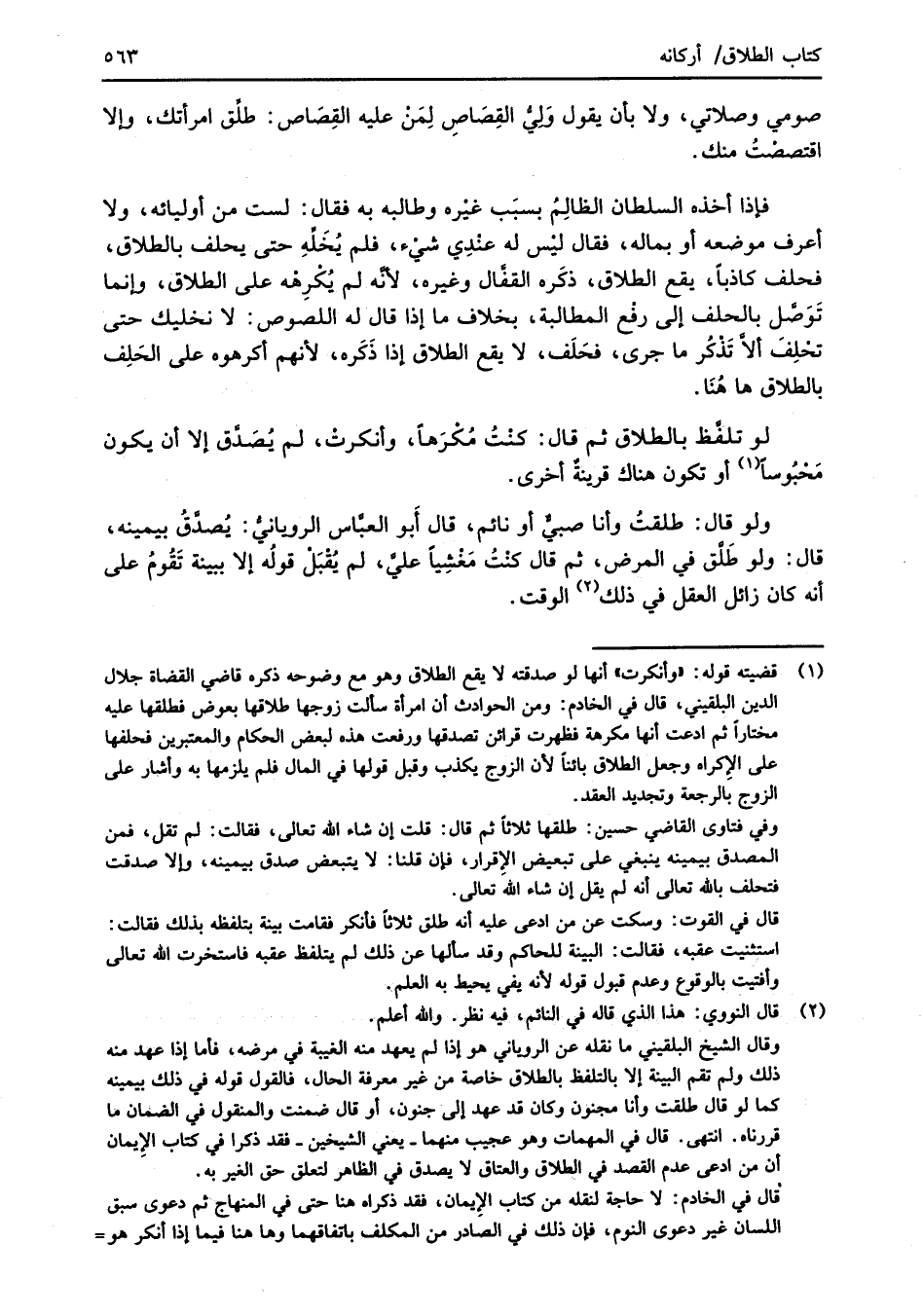 وقال الشيخ البلقيني ما نقله عن الروياني هو إذا لم يعهد منه الغيبة في مرضه، فأما إذا عهد منه ذلك ولم تقم البينة إلا بالتلفظ بالطلاق خاصة من غير معرفة الحال، فالقول قوله في ذلك بيمينه كما لو قال طلقت وأنا مجنون وكان قد عهد إلى جنون، أو قال ضمنت والمنقول في الضمان ما قررناه. انتهى. قال في المهمات وهو عجيب منهما -يعني الشيخين- فقد ذكرا في كتاب الإِيمان أن من ادعى عدم القصد في الطلاق والعتاق لا يصدق في الظاهر لتعلق حق الغير به.