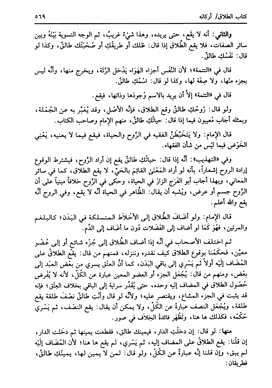وفي "التهذيب": أنَّه إذا قال: حياتُكِ طالقٌ يقع إن أراد الرُّوح، فيشترط الوقوع إرادة الروح إشعاراً، بأنه لو أراد المَعْنَى القائِمَ بالحَيِّ، لا يقع الطلاق، كما في سائر المعاني، وبهذا أجاب أبو الفَرَج الزازَ في الحياة، وحكى في الرُّوح خلافاً مبنياً على أن الرُّوح جسم أو عرض، ويُشبه أن يقال: الظَّاهر في الحياة أنَّه لا يقع، وفي الروح أنَّه يقع والله أعلم.
