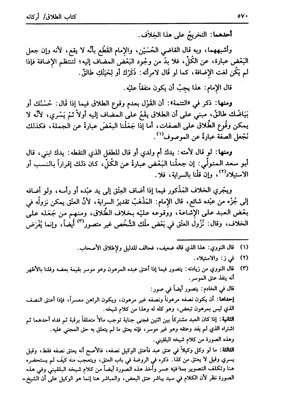 (¬3) قال النووي من زيادته: يتصور فيما إذا أعتق عبده المرهون وهو موسر بقيمة بعضه وقلنا بالأظهر أنه ينفذ عتق الموسر.