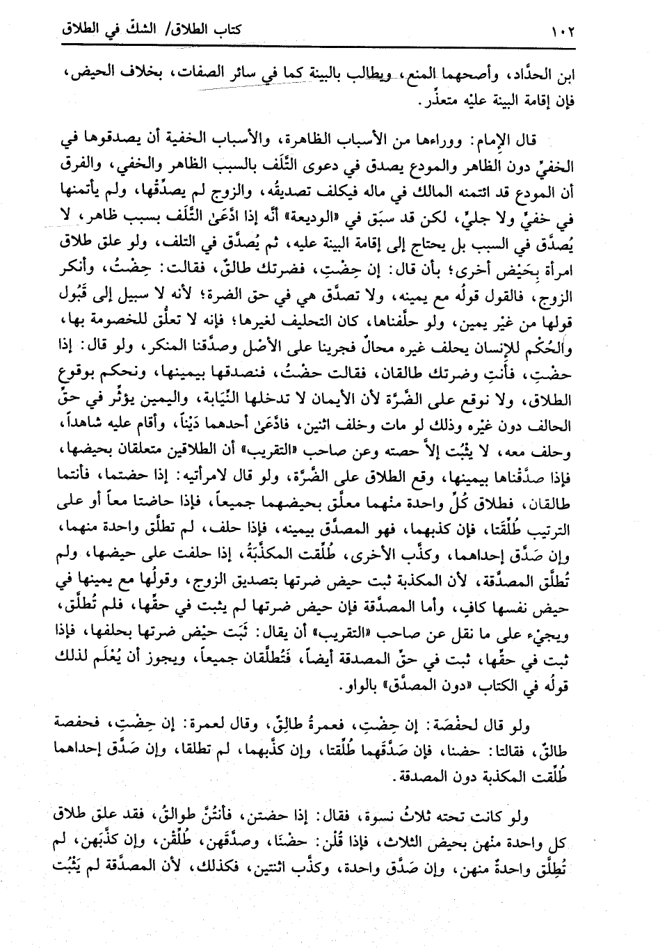ابن الحدَّاد، وأصحهما المنع، ويطالب بالبينة كما في سائر الصفات، بخلاف الحيض، فإن إقامة البينة عليْه متعذِّر.