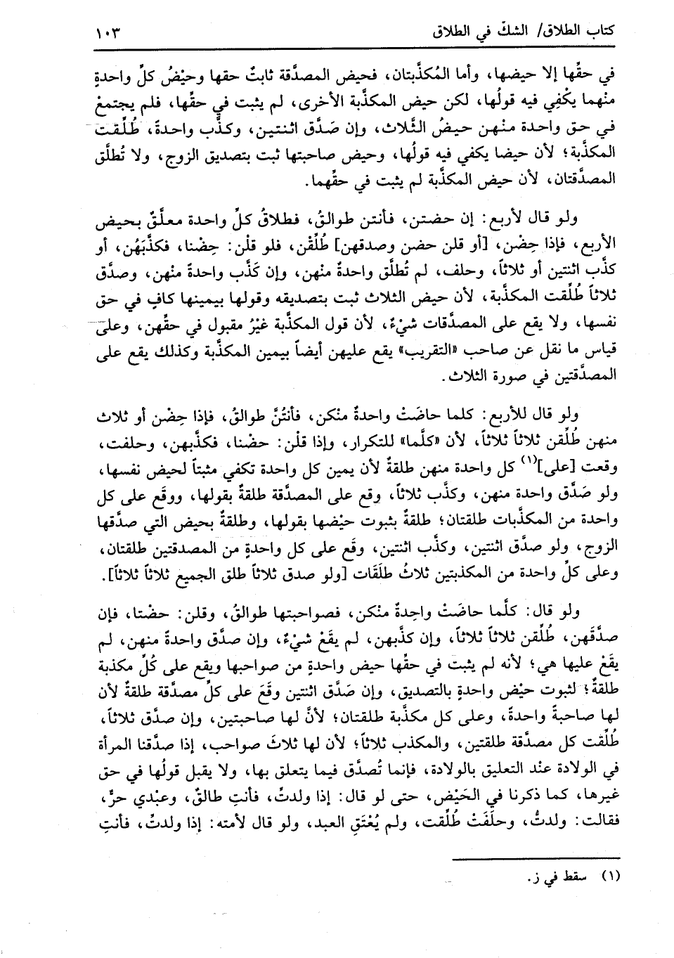 في حقِّها إلا حيضها، وأما المُكذَّبتان، فحيض المصدَّقة ثابتٌ حقها وحيْضُ كلِّ واحدةٍ منْهما يكْفِي فيه قولُها، لكن حيض المكذَّبة الأخرى، لم يثبت في حقِّها، فلم يجتمعْ في حق واحدة منْهن حيضُ الثَّلاث، وإن صَدَّق اثنتين، وكذَّب واحدةً، طُلِّقَت المكذَّبة؛ لأن حيضا يكفي فيه قولُها، وحيض صاحبتها ثبت بتصديق الزوج، ولا تُطلَّق المصدَّقتان؛ لأن حيض المكذَّبة لم يثبت في حقِّهما.