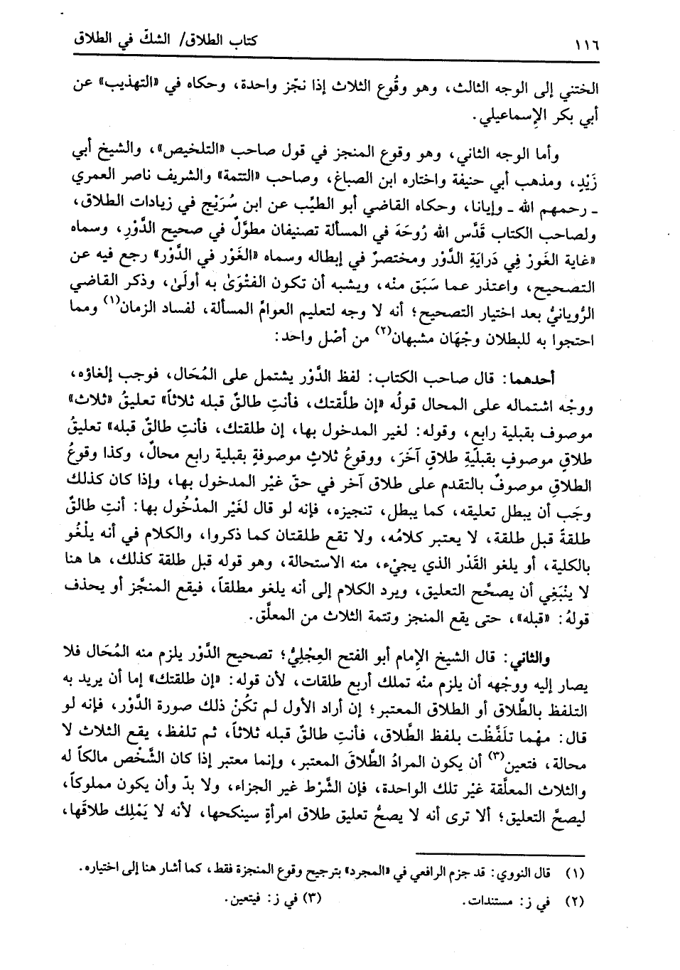 (¬1) قال النووي: قد جزم الرافعي في "المجرد" بترجيح وقوع المنجزة فقط، كما أشار هنا إلى اختياره.