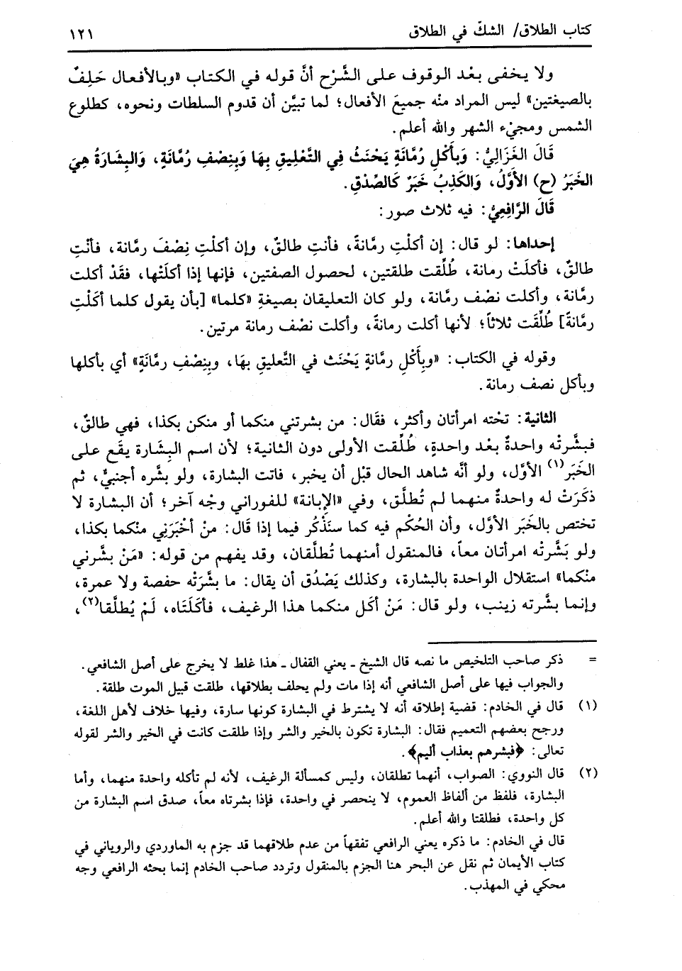 (¬2) قال النووي: الصواب، أنهما تطلقان، وليس كمسألة الرغيف؛ لأنه لم تأكله واحدة منهما، وأما البشارة، فلفظ من ألفاظ العموم، لا ينحصر في واحدة، فإذا بشرتاه معاً، صدق اسم البشارة من كل واحدة، فطلقتا والله أعلم.