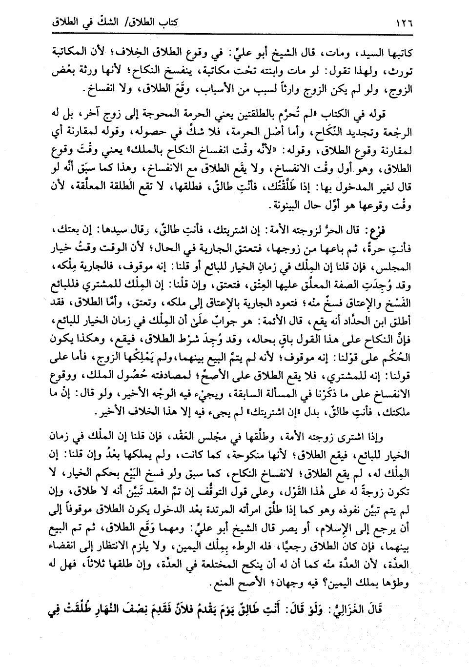 فرْع: قال الحرُّ لزوجته الأمة: إن اشتريتك، فأنتِ طالقٌ، وقال سيدها: إن بعتك، فأنتِ حرةٌ، ثم باعها من زوجها، فتعتق الجارية في الحال؛ لأن الوقت وقتُ خيار المجلس، فإن قلنا إن المِلْك في زمانِ الخيار للبائع أو قلنا: إنه موقوف، فالجاربة مِلْكه، وقد وُجِدَتِ الصفة المعلَّق عليها العِتْق، فتعتق، وإن قلْنا: إن المِلْك للمشتري فللبائع الفَسْخ والإِعتاق فسخٌ منْه؛ فتعود الجارية بالإِعتاق إلى ملكه، وتعتق، وأمَّا الطلاق، فقد أطلق ابن الحدَّاد أنَّه يقع، قال الأئمة: هو جوابٌ عَلَى أن المِلْك في زمان الخيار للبائع، فإنَّ النكاح على هذا القول باقٍ بحاله، وقد وُجِدَ شرْط الطلاق، فيقع، وهكذا يكون الحُكْم على قوْلنا: إنه موقوف؛ لأنه لم يتمَّ البيع بينهما, ولم يَمْلِكْها الزوج، فأما على قولنا: إنه للمشتري، فلا يقع الطلاق على الأصحِّ؛ لمصادفته حُصُول الملك، ووقوع الانفساخ على ما ذكَرْنا في المسألة السابقة، ويجيْء فيه الوجْه الأخير، ولو قال: إنْ ما ملكتك، فأنتِ طالقٌ، بدل "إن اشتريتك" لم يجئ فيه إلا هذا الخلاف الأخير.