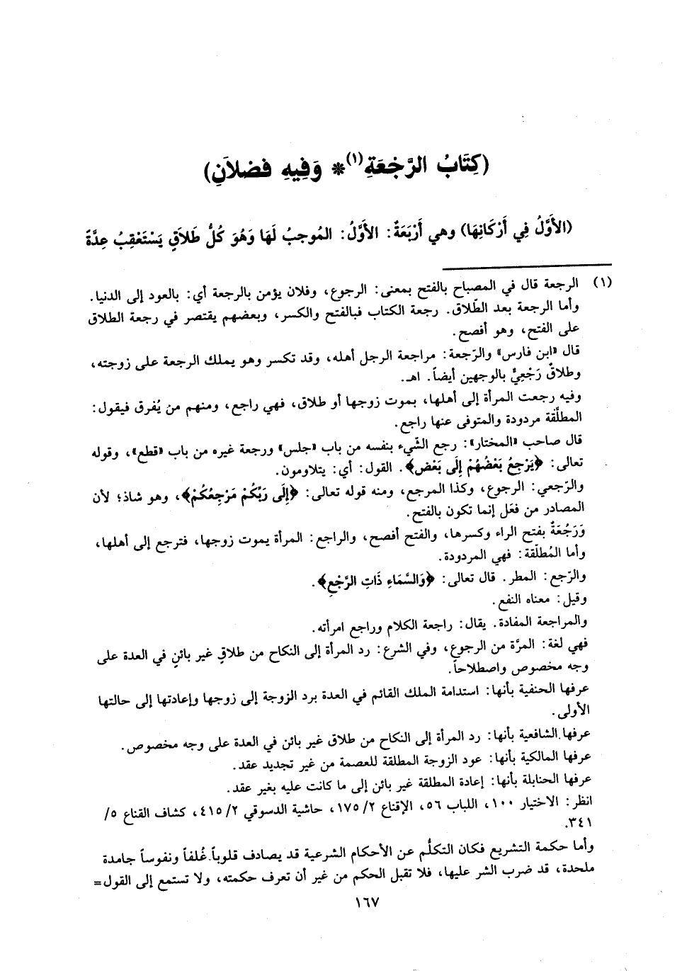 (¬1) الرجعة قال في المصباح بالفتح بمعنى: الرجوع، وفلان يؤمن بالرجعة أي: بالعود إلى الدنيا. وأما الرجعة بعد الطلاق. رجعة الكتاب فبالفتح والكسر، وبعضهم يقتصر في رجعة الطلاف على الفتح، وهو أفصح.