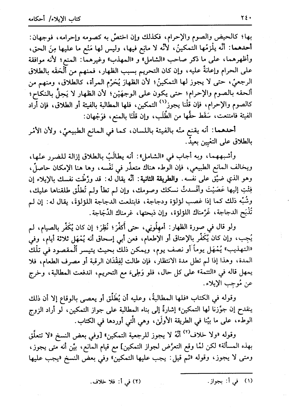 وقوله "ولا خلاف (¬2) أنَّهُ لا يجوز للرجعية التمكين" [وفي بعض النسخ "لا تتعلَّق بهذه المسألة" لكن لمَّا وقع التعرُّض لجواز التمكين] مع قيام المانع، بيّن أنه متى يجوز، ومتى لا يجوز، وقوله "ثم قيل: يجب عليها التمكين" وفي بعض النسخ "يجب عليها