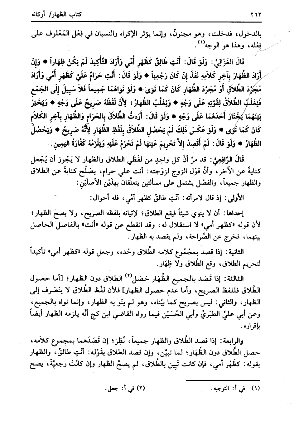 الأولى: إذ قال لامرأته: أنتِ طالقٌ كظهر أُمِّي، فله أحوال:
