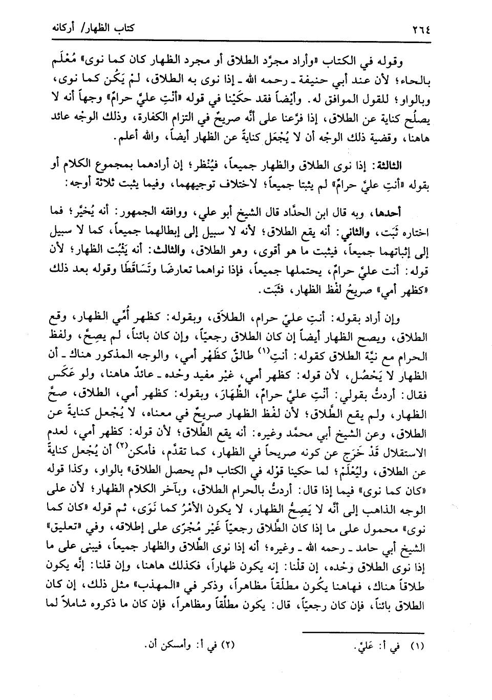 وقوله في الكتاب "وأراد مجرَّد الطَّلاق أو مجرد الظِّهار كان كما نوى" مُعْلَم بالحاء؛ لأن عند أبي حنيفة -رحمه الله- إذا نوى به الطَّلاق، لمْ يَكُن كما نوى، وبالواو؛ للقول الموافق له. وأيضًا فقد حكَيْنا في قوله "أنْتِ عليَّ حرامٌ" وجهًا أنه لا يصلُح كناية عن الطَّلاق، إذا فرَّعنا على أنَّه صريحٌ في التزام الكفارة، وذلك الوجْه عائد هاهنا، وقضية ذلك الوجْه أن لا يُجْعَل كنايةً عن الظِّهار أيضًا، والله أعلم.