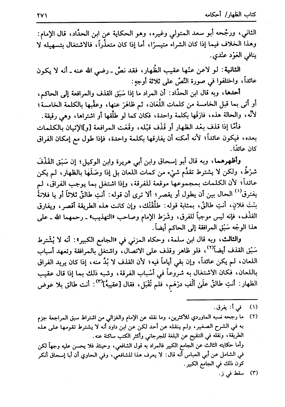 والثالث، وبه قال ابن سلمة، وحكاه المزني في "الجامع الكبير": أنه لا يُشْترط سَبْق القذف أيضًا (¬2)، فلو ظاهر وقذف على الاتصال، واشتغل بالمرافقة وتعهد أسباب اللعان، لم يكن عائدًا، وإن بقي أيامًا فيه؛ لأن القذف لا بُدَّ منه، إذا كان يريد الفراق باللعان، فكان الاشتغال به شروعًا في أسْباب الفرقة، وشبه ذلك بما إذا قال عقيب الظِّهار: أنتِ طالقٌ عَلَى ألْفِ درْهَمٍ، فلم تُقْبَل، فقال [عقيبةُ] (¬3): أنت طالق بلا عوض