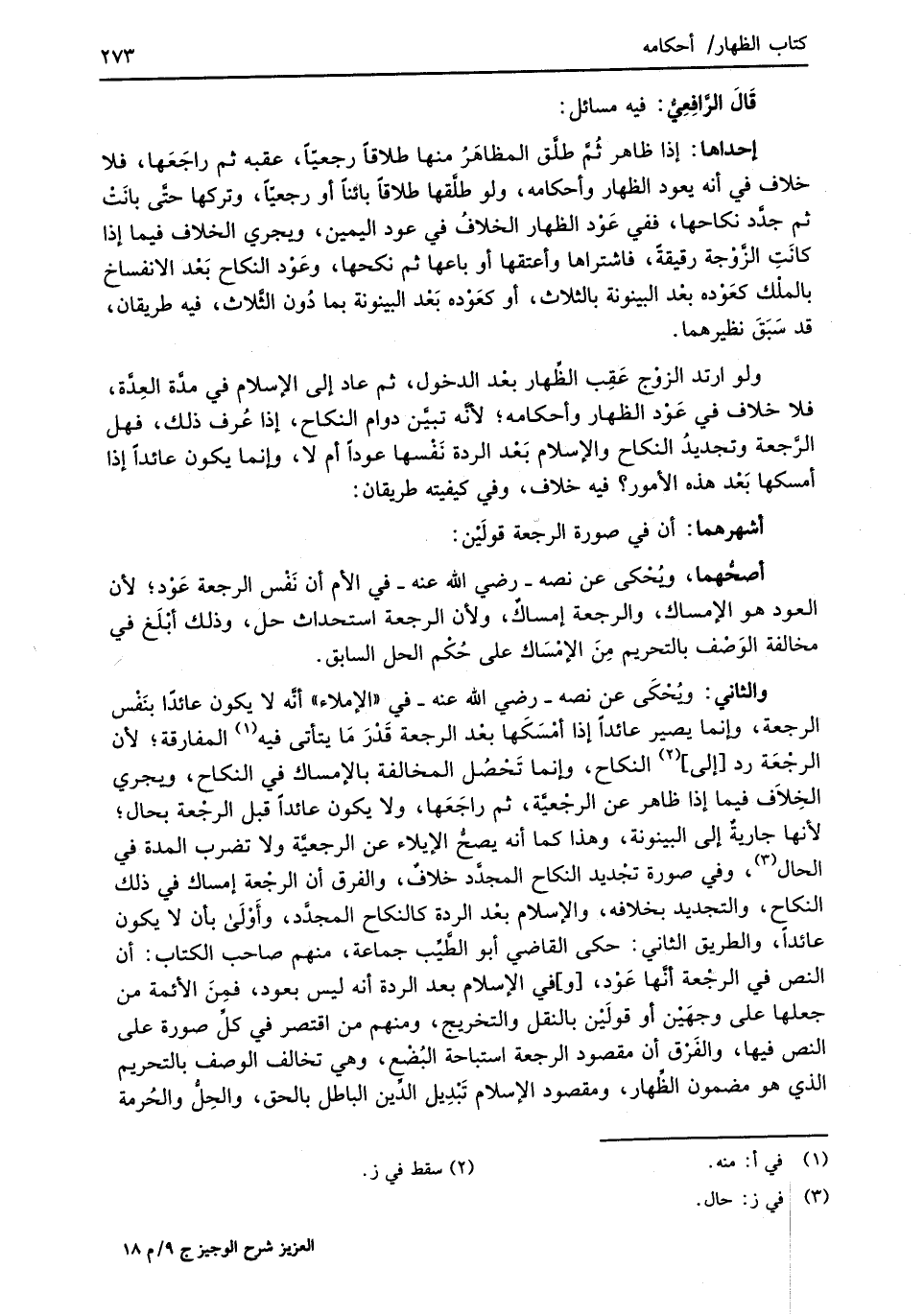 كتاب العزيز شرح الوجيز المعروف بالشرح الكبير ط العلمية (اسم الجزء: 9)