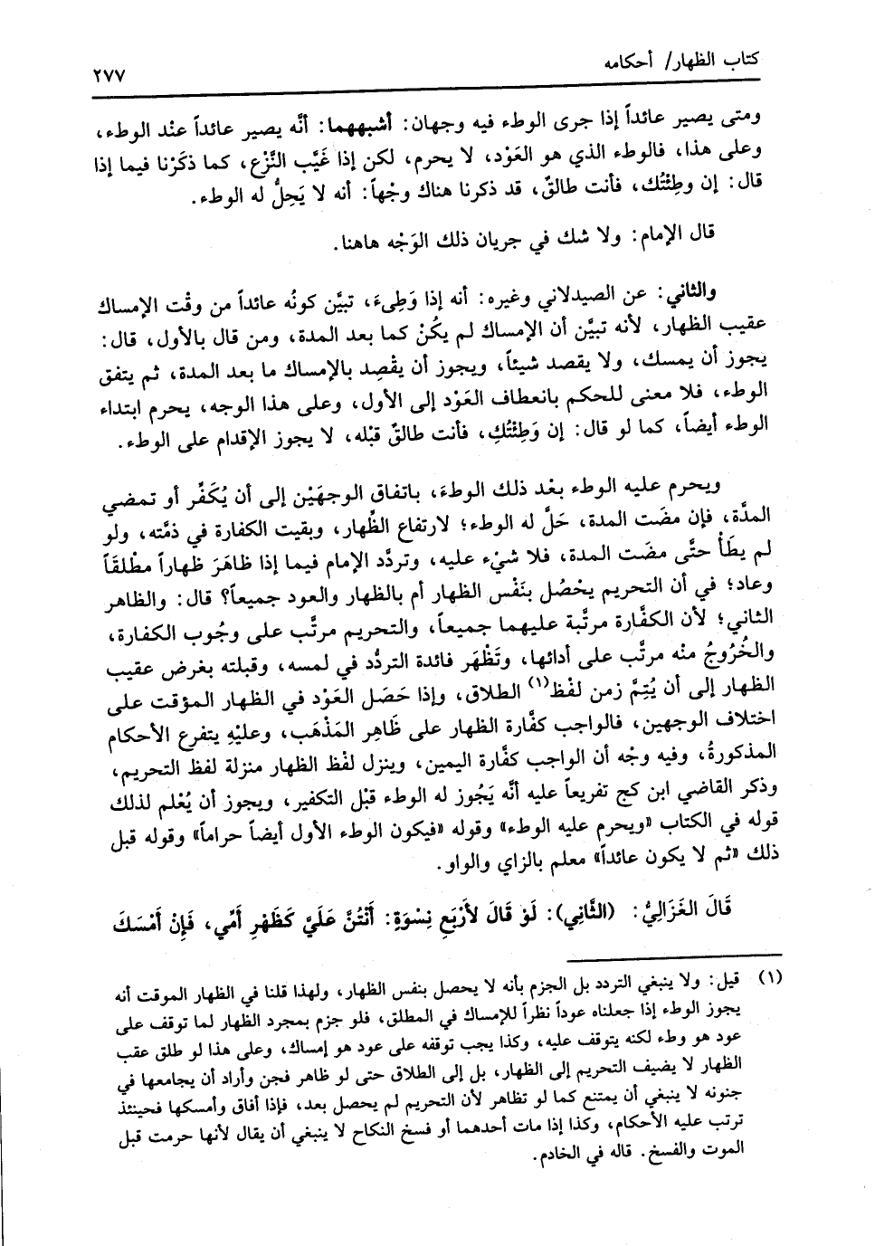 (¬1) قيل: ولا ينبغي التردد بل الجزم بأنه لا يحصل بنفس الظِّهار، ولهذا قلنا في الظِّهار الموقت أنه يجوز الوطء إذا جعلناه عودًا نظرًا للإمساك في المطلق، فلو جزم بمجرد الظِّهار لما توقف على عود هو وطء لكنه يتوقف عليه، وكذا يجب توقفه على عود هو امساك، وعلى هذا لو طلق عقب الظِّهار لا يضيف التحريم إلى الظِّهار، بل إلى الطلاق حتى لو ظاهر فجن وأراد أن يجامعها في جنونه لا ينبغي أن يمتنع كما لو تظاهر لأن التحريم لم يحصل بعد، فإذا أفاق وأمسكها فحيئذ ترتب عليه الأحكام، وكذا إذا مات أحدهما وفسخ النكاح لا ينبغي أن يقال لأنها حرمت قبل الموت والفسخ. قاله في الخادم.