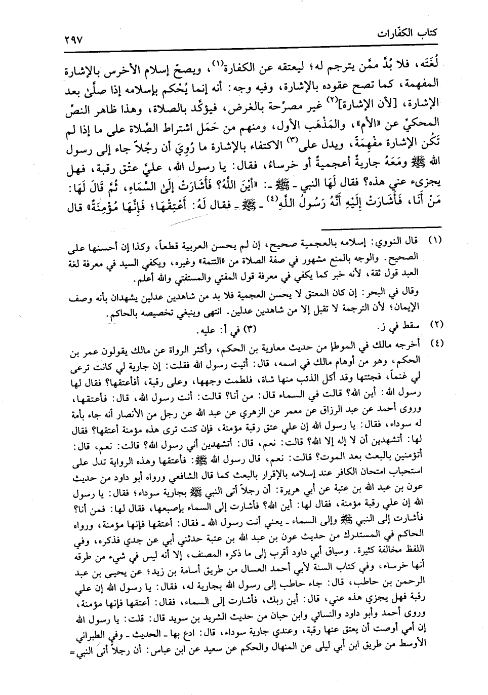 لُغَتَه، فلا بُدَّ ممَّن يترجم له؛ ليعتقه عن الكفارة (¬1)، ويصحّ إسلام الأخرس بالإشارة المفهمة، كما تصح عقوده بالإشارة، وفيه وجه: أنه إنما يُحْكم بإسلامه إذا صلَّى بعد الإشارة، [لأن الإشارة] (¬2) غير مصرِّحة بالغرض، فيؤكَّد بالصلاة، وهذا ظاهر النصَّ المحكيِّ عن "الأم "، والمَذْهَب الأول، ومنهم من حَمَل اشتراط الصَّلاة على ما إذا لم تَكُن الإشارة مفْهِمَةً، ويدل على (¬3) الاكتفاء بالإشارة ما رُوِيَ أن رجُلاً جاء إلى رسول الله -صلى الله عليه وسلم- ومَعَهُ جاريةٌ أعجميةٌ أو خرساءُ، فقال: يا رسول الله، عليَّ عتْق رقبة، فهل يجزئ عني هذه؟ فقال لَهَا النبي -صلى الله عليه وسلم-: "أيْنَ اللهُ؟ فَأشَارَتْ إلَى السَّمَاءِ، ثُمَّ قَالَ لَهَا: مَنْ أَنَا، فَأَشَارَتْ إِلَيْهِ أنَّهُ رَسُولُ اللهِ (¬4) -صلى الله عليه وسلم- فقال لَهُ: أَعْتِقْهَا؛ فَإِنَّهَا مُؤْمِنَةٌ" قال