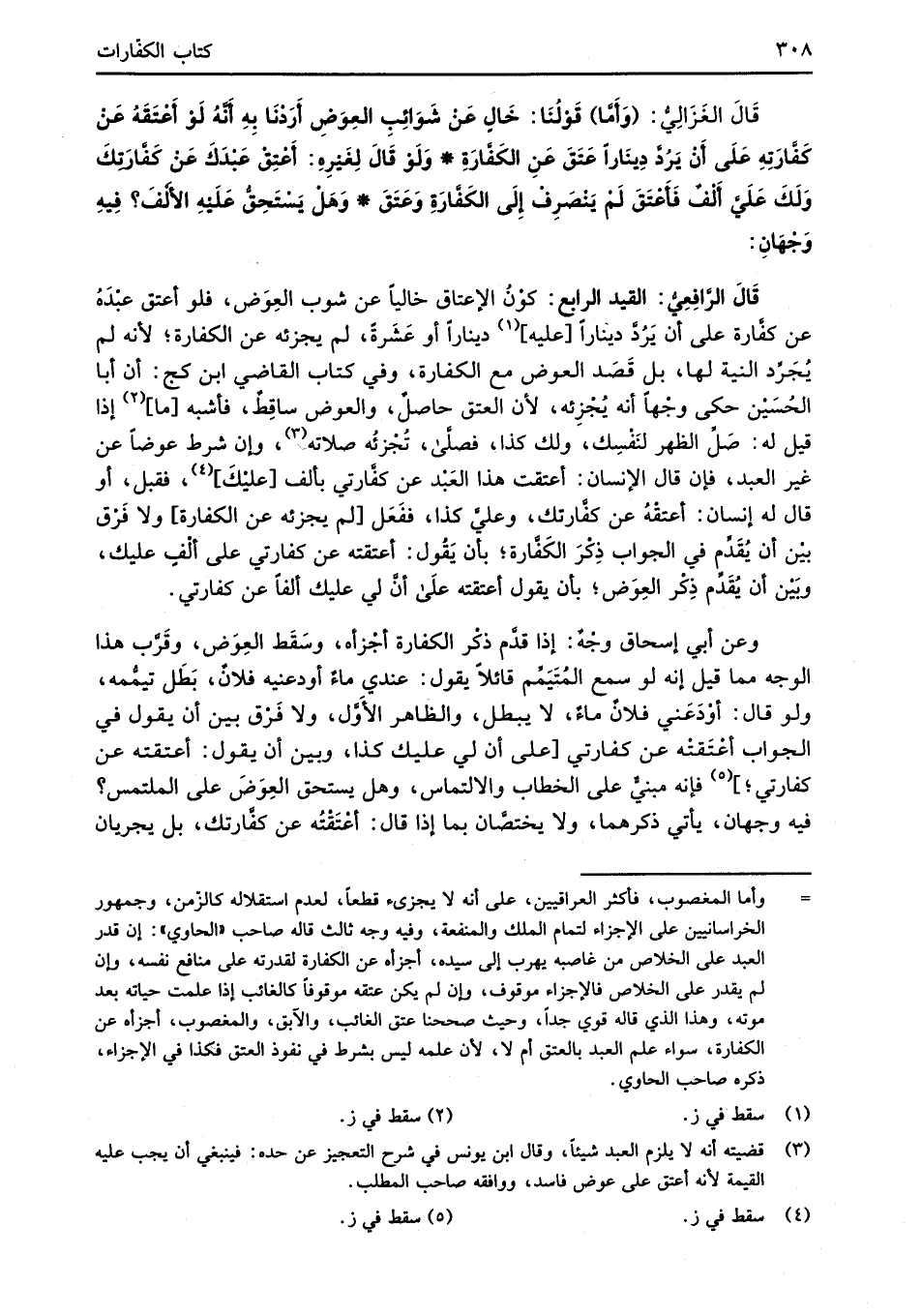 قَالَ الرَّافِعِيُّ: القيد الرابع: كوْنُ الإعتاق خالياً عن شوب العِوَض، فلو أعتق عبْدَهُ عن كفَّارة على أن يَرُدَّ ديناراً [عليه] (¬1) ديناراً أو عَشَرةً، لم يجزئه عن الكفَّارة؛ لأنه لم يُجَرِّد النية لها، بل قَصَد العوض مع الكفَّارة، وفي كتاب القاضي ابن كج: أن أبا الحُسَيْن حكى وجْهاً أنه يُجْزِئه؛ لأن العتق حاصلٌ، والعوض ساقِطٌ، فأشبه [ما] (¬2) إذا قيل له: صَلِّ الظهر لنَفْسِك، ولك كذا، فصلَّى، تُجْزئُه صلاته (¬3)، وإن شرط عوضاً عن غير العبد، فإن قال الإنسان: أعتقت هذا العَبْد عن كفَّارتي بألف [عليْكَ] (¬4)، فقبل، أو قال له إنسان: أعتقْهُ عن كفَّارتك، وعليَّ كذا، ففَعَل [لم يجزئه عن الكفَّارة] ولا فَرْق بيْن أن يُقَدِّم في الجواب ذِكْرَ الكَفَّارة؛ بأن يَقُول: أعتقته عن كفارتي على ألْفٍ عليك، وبَيْن أن يُقَدِّم ذِكْر العِوَض؛ بأن يقول أعتقته عَلَى أنَّ لي عليك ألفاً عن كفارتي.