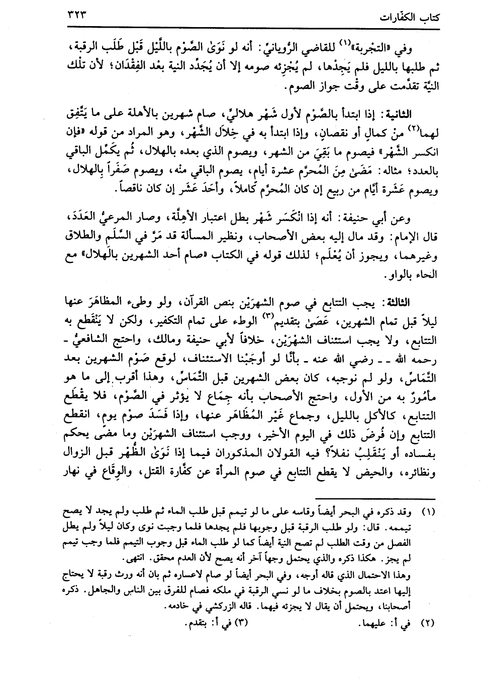 الثالثة: يجب التتابع في صوم الشهرَيْن بنص القرآن، ولو وطئ المظاهَرَ عنها ليلاً قبل تمام الشهرين، عَصَى بتقديم (¬3) الوطء على تمام التكفير، ولكن لا يَنْقَطع به التتابع، ولا يجب استئناف الشهْرَيْن، خلافاً لأبي حنيفة ومالك، واحتج الشَّافعيُّ -رحمه الله - رضي الله عنه- بأنَّا لو أوجَبْنا الاستئناف، لوقع صَوْم الشهرين بعد التَّمَاسِّ، ولو لم نوجبه، كان بعض الشهرين قبل التَّمَاسِّ، وهذا أقرب إلى ما هو مأمُورٌ به من الأول، واحتج الأصحاب بأنه جِمَاع لا يؤثر في الصَّوْم، فلا يقْطَع التتابع، كالأكل بالليل، وجماع غَيْر المُظَاهَر عنها، وإذا فَسَدَ صوْم يومٍ، انقطع التتابع وإن فُرضَ ذلك في اليوم الأخير، ووجب استئناف الشهرَيْن وما مضى يحكم بفساده أو يَنْقَلِبُ نفلاً؟ فيه القولان المذكوران فيما إذا نَوَى الظُّهْر قبل الزوال ونظائره، والحيض لا يقطع التتابع في صوم المرأة عن كفَّارة القتل، والوِقَاع في نهار