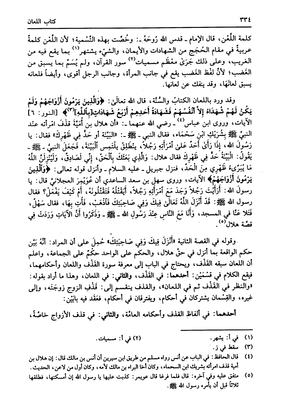 وقد ورد باللعان الكتابُ والسنّة، قال الله تعالَى: {وَالَّذِينَ يَرْمُونَ أَزْوَاجَهُمْ وَلَمْ يَكُنْ لَهُمْ شُهَدَاءُ إِلاَّ أَنْفُسُهُمْ فَشَهَادَةُ أَحَدِهِمْ أَرْبَعُ شَهَادَاتٍ [بِاللَّهِ] (¬3)} [النور: 6] الآيات، وروى ابن عباس (¬4) -رضي الله عنهما-: "أن هلال بن أُمَيَّةَ قذَفَ امْرأته عنْد النبيِّ -صلى الله عليه وسلم- بِشُرَيْكِ ابْن سَحْمَاء، فقال النبي -صلى الله عليه وسلم-: "البَيِّنَة أو حَدٌّ في ظَهْرِكَ" فقال: يا رَسُولَ الله، إِذَا رَأَى أَحَدٌ عَلى امْرَأَتِهِ رَجُلاً، ينْطَلِقُ يلْتَمِس البَيِّنَةَ، فَجَعَل النبيُّ -صلى الله عليه وسلم- يَقُولُ: البَيِّنَةُ حَدٌّ في ظَهْرِكَ فقال هلال: وَالَّذِي بَعَثَكَ بِالحَقِّ، إِنِّي لَصَادِقٌ، وَلَيُنْزِلَنَّ اللهُ مَا يُبَرِّئُ ظَهْرِي مِنَ الْحَدِّ، فنزل جبريل -عليه السلام- وأنزل قوله تعالى: {وَالَّذِينَ يَرْمُونَ أَزْوَاجَهُمْ} الآيات، وروى سهل بن سعد الساعدي أن عُوَيْمِرَ العجلانيَّ قال: يا رسولَ الله: أَرَأَيتَ رَجُلا وَجَدَ مَعَ امْرَأَتِهِ رَجُلاً، أَيَقْتلُهُ فَتَقْتُلُونَهُ، أَمْ كَيْفَ يَفْعَل؟ فقال رسول الله -صلى الله عليه وسلم-: قَد أَنْزَلَ اللهُ تَعَالَى فِيكَ وَفِي صَاحِبَتِكَ فَاذْهَبْ، فَأْتِ بِهَا، فقال سَهْلٌ، فَتَلاعَنَّا في المسجد، وَأَنَا مَعَ النَّاسِ عِنْدَ رَسُولِ الله -صلى الله عليه وسلم- وَذَكَرُوا أَنَّ الآيَاتِ وَرَدَتْ فِي قصَّة هلال (¬5).