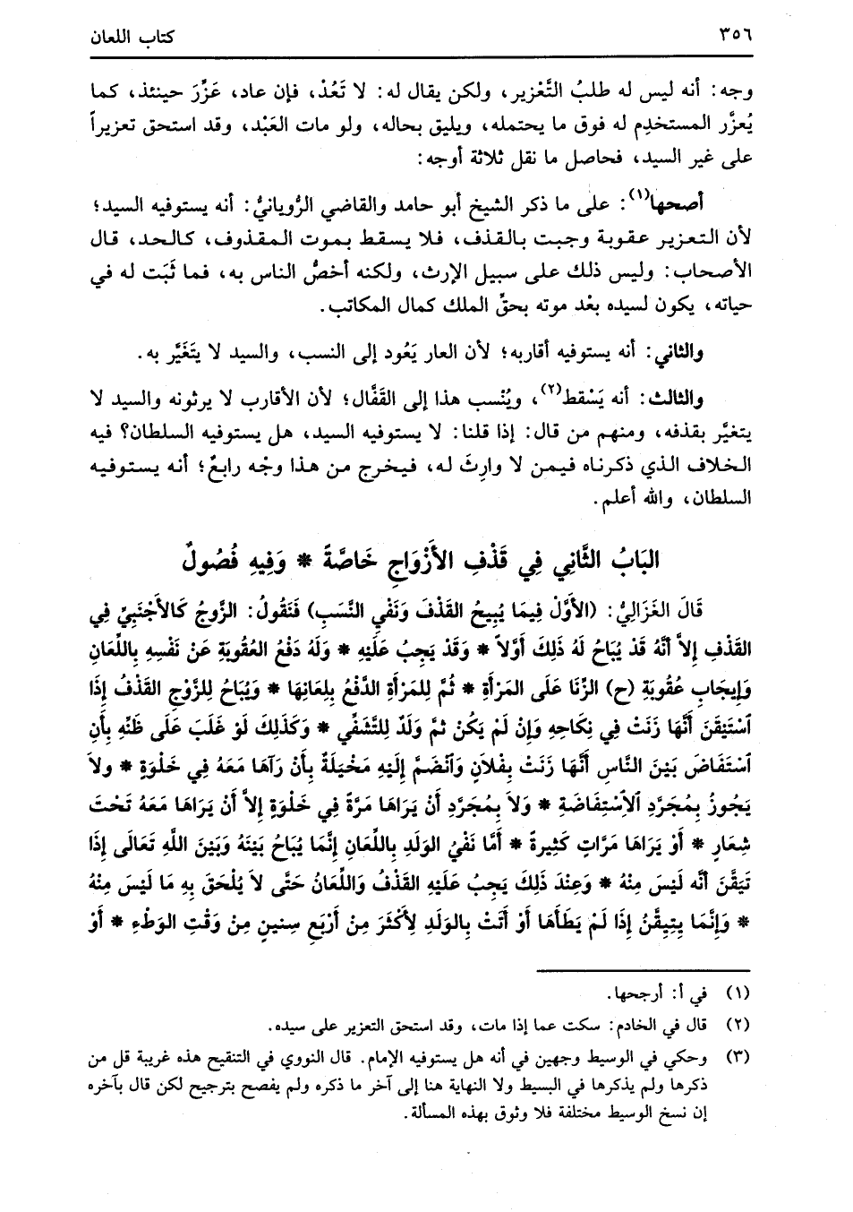 البَابُ الثَّانِي فِي قَذْفِ الأَزْوَاجِ خَاصَّةً* وَفِيهِ فُصُولٌ