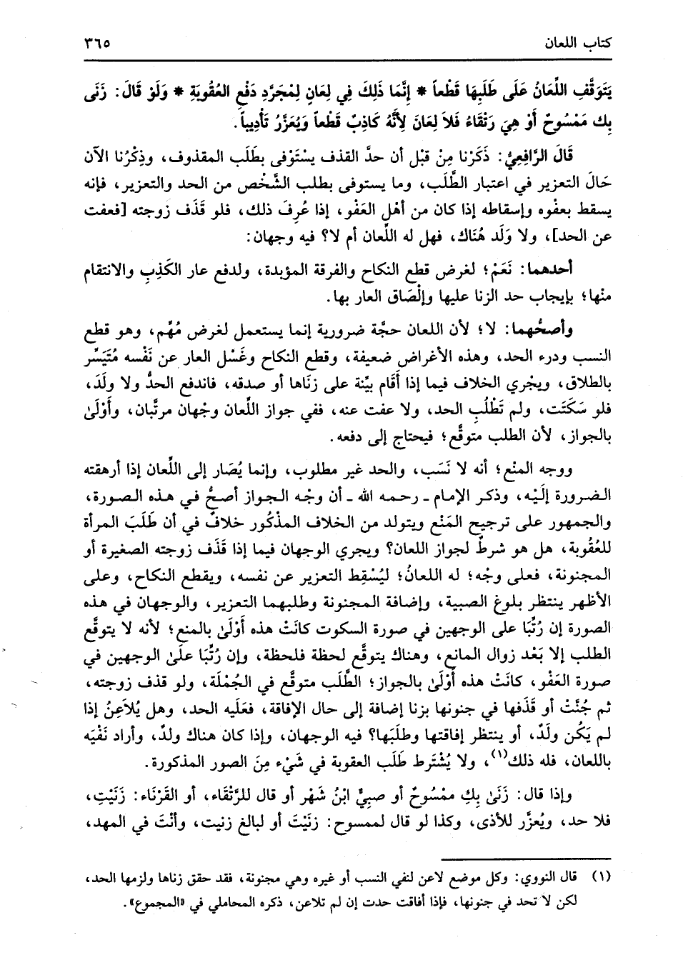 (¬1) قال النووي: وكل موضع لاعن لنفي النسب أو غيره وهي مجنونة، فقد حقق زناها ولزمها الحد، لكن لا تحد في جنونها، فهذا أفاقت حدت إن لم تلاعن، ذكره المحاملي في "المجموع".