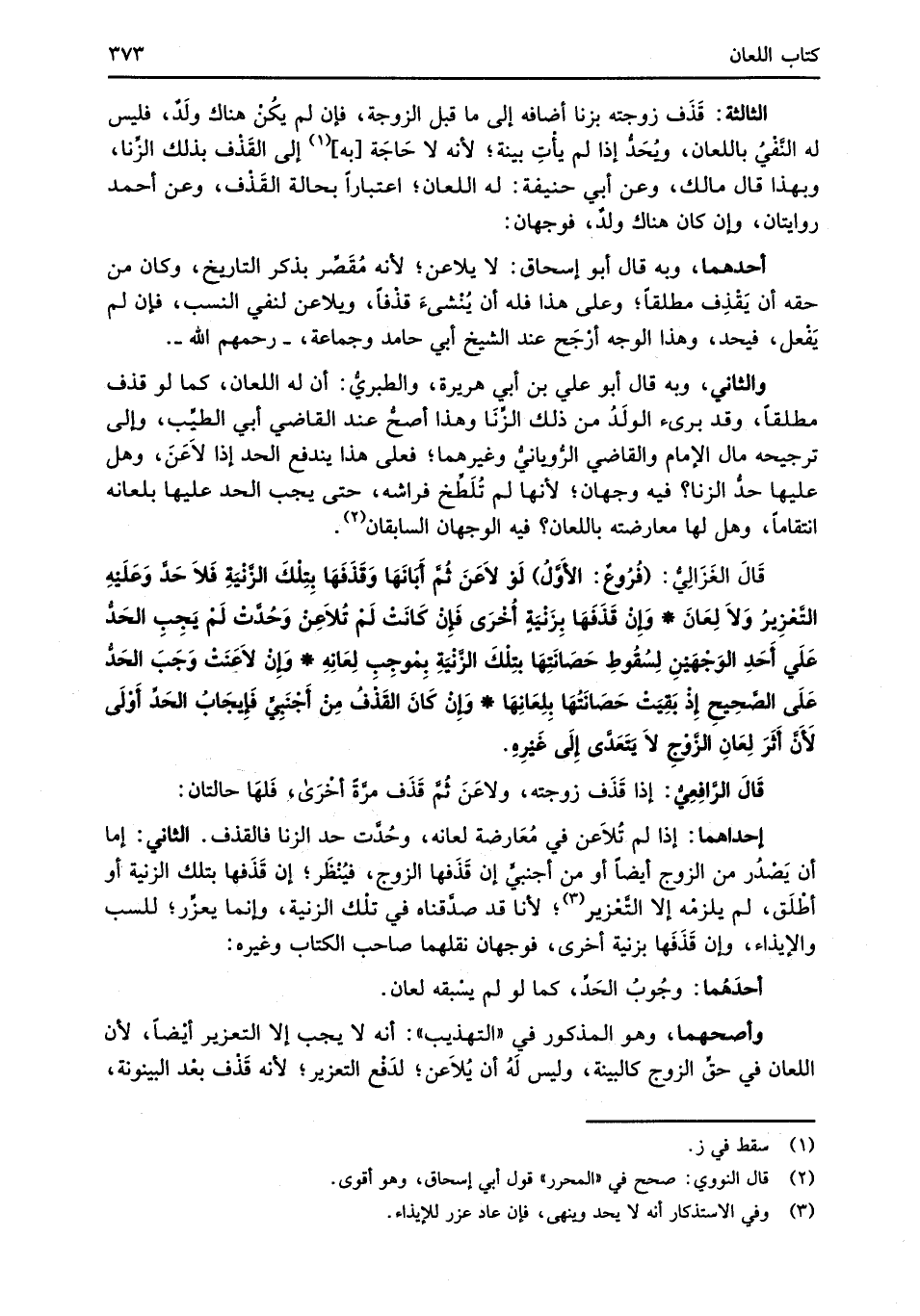 قَالَ الغَزَالِيُّ: (فُرُوعٌ: الأَوَّلُ) لَوْ لاَعَنَ ثُمَّ أَبَانَهَا وَقَذَفَهَا بِتِلْكَ الزَّنْيَةِ فَلاَ حَدَّ وَعَلَيْهِ التَّعْزِيرُ وَلاَ لِعَانَ* وَإنْ قذَفَهَا بِزَنْيَةٍ أُخْرَى فَإِنْ كَانَتْ لَمْ تُلاَعِنْ وَحُدَّتْ لَمْ يَجِبِ الحَدُّ عَلَي أَحَدِ الوَجْهَيْنِ لِسُقُوطِ حَصَانَتِهَا بتِلْكَ الزَّنْيَةِ بِمْوجِبِ لِعَانِهِ* وَإنْ لاَعَنَتْ وَجَبَ الحَدُّ عَلَى الصَّحِيحِ إِذْ بَقيَتْ حَصَانَتُهَا بِلِعَانِهَا* وَإِنْ كَانَ القَذْفُ مِنْ أَجْنَبِيٍّ فإيجَابُ الحَدِّ أَوْلَى لأَنَّ أَثَرَ لِعَانِ الزَّوْجِ لاَ يَتَعَدَّى إِلَى غَيْرِهِ.