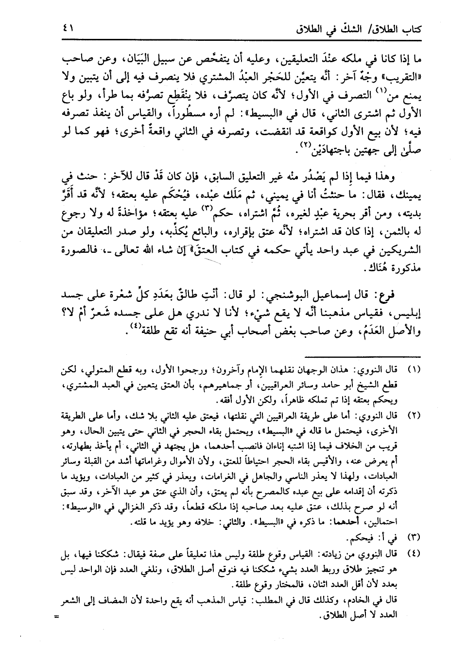 (¬4) قال النووي من زيادته: القياس وقوع طلقة وليس هذا تعليقاً على صفة فيقال: شككنا فيها، بل هو تنجيز طلاق وربط العدد بشيء شككنا فيه فنوقع أصل الطلاق، ونلغي العدد فإن الواحد ليس بعدد لأن أقل العدد اثنان، فالمختار وقوع طلقة.