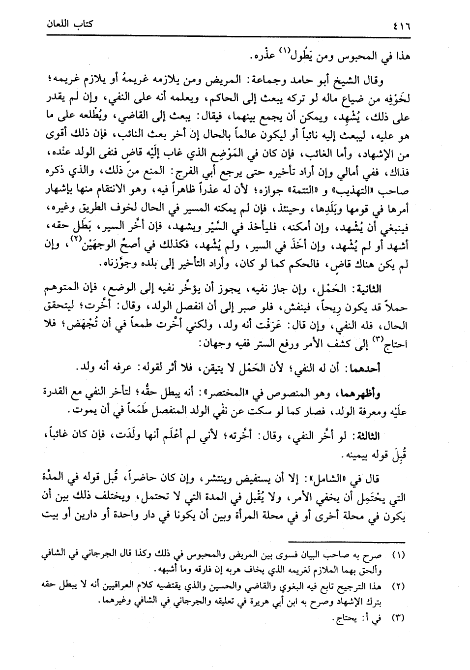 الثانية: الحَمْل، وإن جاز نفيه، يجوز أن يؤخِّر نفيه إلى الوضع، فإن المتوهم حملاً قد يكون رِيحاً، فينفش، فلو صبر إلى أن انفصل الولد، وقال: أخَّرت؛ ليتحقق الحال، فله النفي، وإن قال: عَرَفْت أنه ولد، ولكني أخَّرت طمعاً في أن تُجْهَض؛ فلا احتاج (¬3) إلى كشف الأمر ورفع الستر ففيه وجهان: