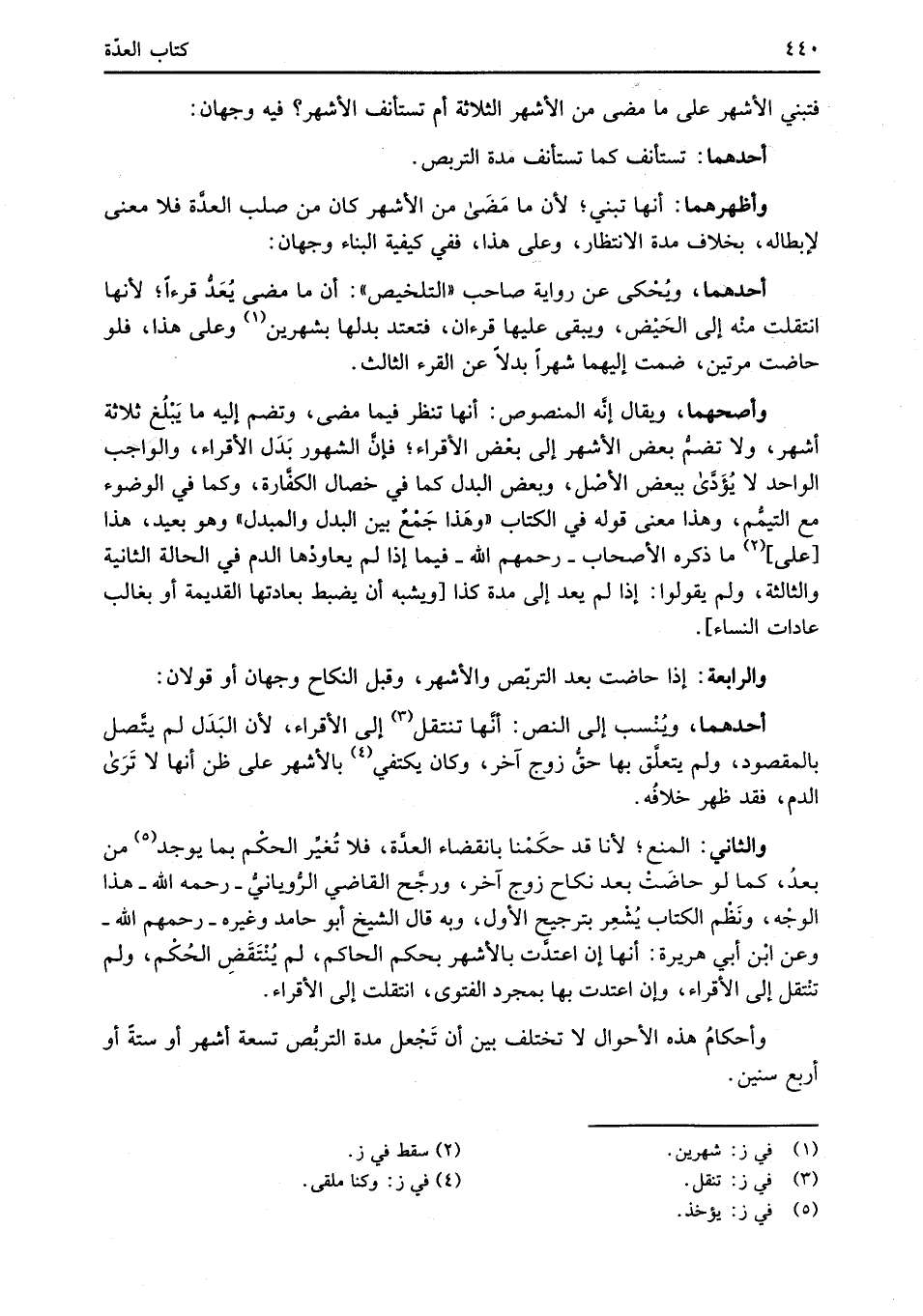 فتبني الأشهر على ما مضى من الأشهر الثلاثة أم تستأنف الأشهر؟ فيه وجهان: