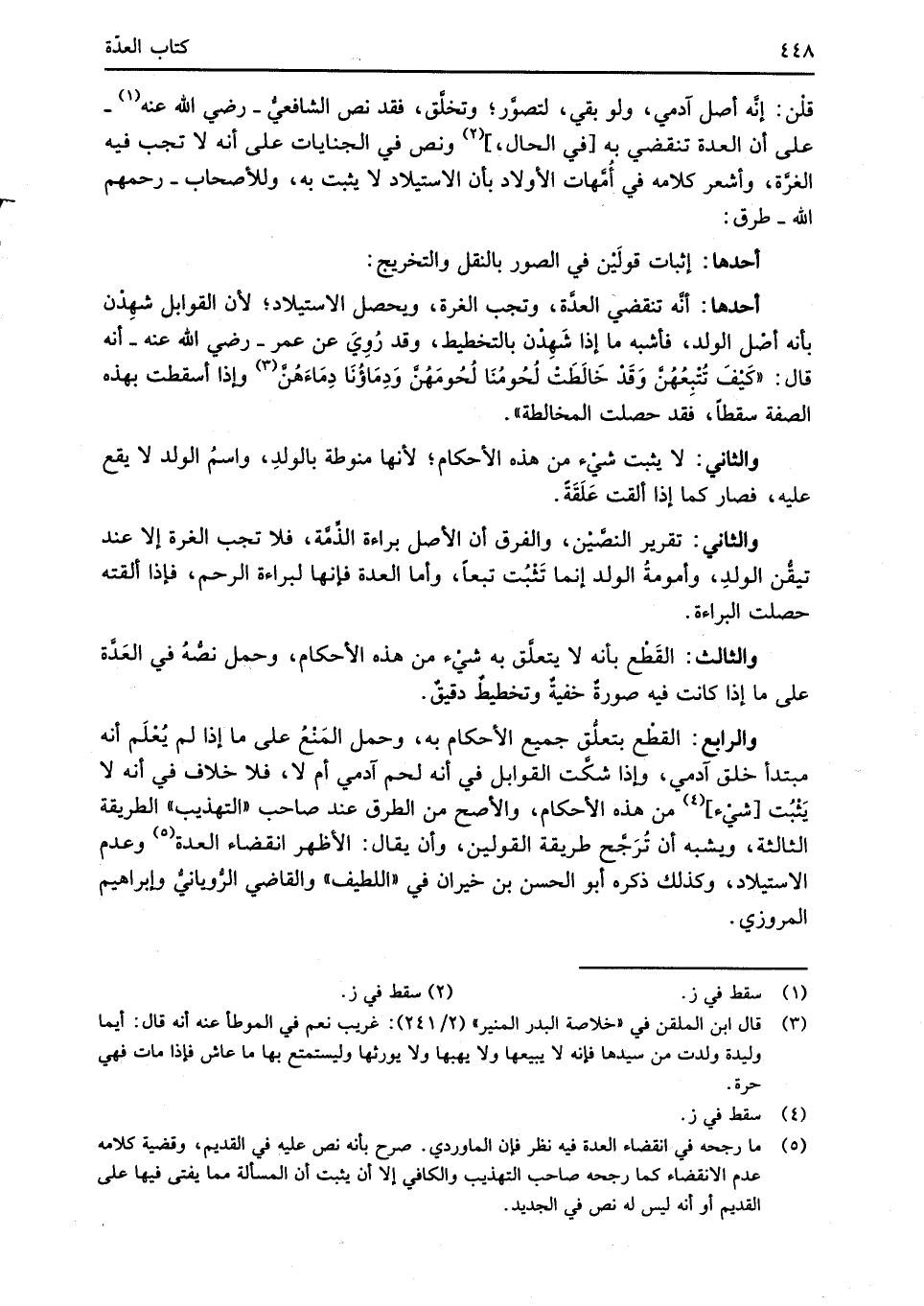 (¬5) ما رجحه في انقضاء العدة فيه نظر فإن الماوردي. صرح بأنه نص عليه في القديم، وقضية كلامه عدم الانقضاء كما رجحه صاحب التهذيب والكافي إلا أن يثبت أن المسألة مما يفتى فيها على القديم أو أنه ليس له نص في الجديد.