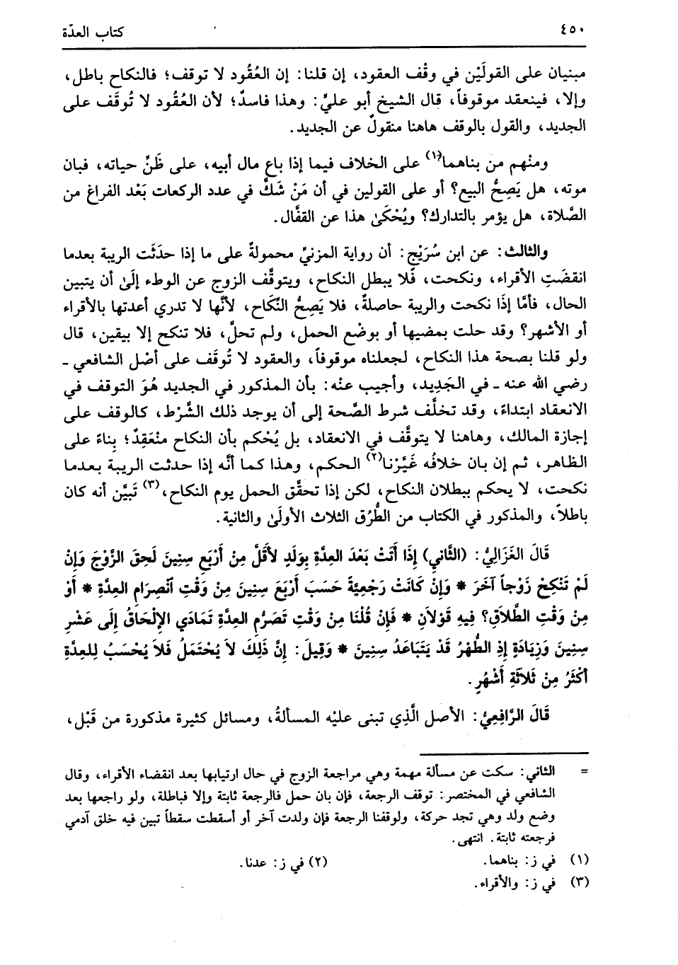 والثالث: عن ابن سُرَيْجٍ: أن رواية المزنيِّ محمولةٌ على ما إذا حدَثَت الريبة بعدما انقضَتِ الأقراء، ونكحت، فلا يبطل النكاح، ويتوقَّف الزوج عن الوطء إلَى أن يتبين الحال، فأمَّا إذَا نكحت والريبة حاصلةٌ، فلا يَصِحُّ النِّكَاح؛ لأنَّها لا تدري أعدتها بالأقراء أو الأشهر؟ وقد حلت بمضيها أو بوضْع الحمل، ولم تحلَّ، فلا تنكح إلا بيقين، قال ولو قلنا بصحة هذا النكاح، لجعلناه موقوفًا، والعقود لا تُوقَف على أصْل الشَّافعي -رضي الله عنه- في الجَدِيد، وأجيب عنْه: بان المذكور في الجديد هُوَ التوقف في الانعقاد ابتداءً، وقد تخلَّف شرط الصَّحة إلى أن يوجد ذلك الشَّرْط، كالوقف على إجازة المالك، وهاهنا لا يتوقَّف في الانعقاد، بل يُحْكم بأن النكاح منْعَقِدٌ؛ بِناءً على الظاهر، ثم إن بان خلافُه غَيَّرْنا (¬2) الحكم، وهذا كما أنَّه إذا حدثت الريبة بعد ما نكحت، لا يحكم ببطلان النكاح، لكن إذا تحقَّق الحمل يوم النكاح، (¬3) تَبيَّن أنه كان باطلاً، والمذكور في الكتاب من الطُّرُق الثلاث الأولَى والثانية.