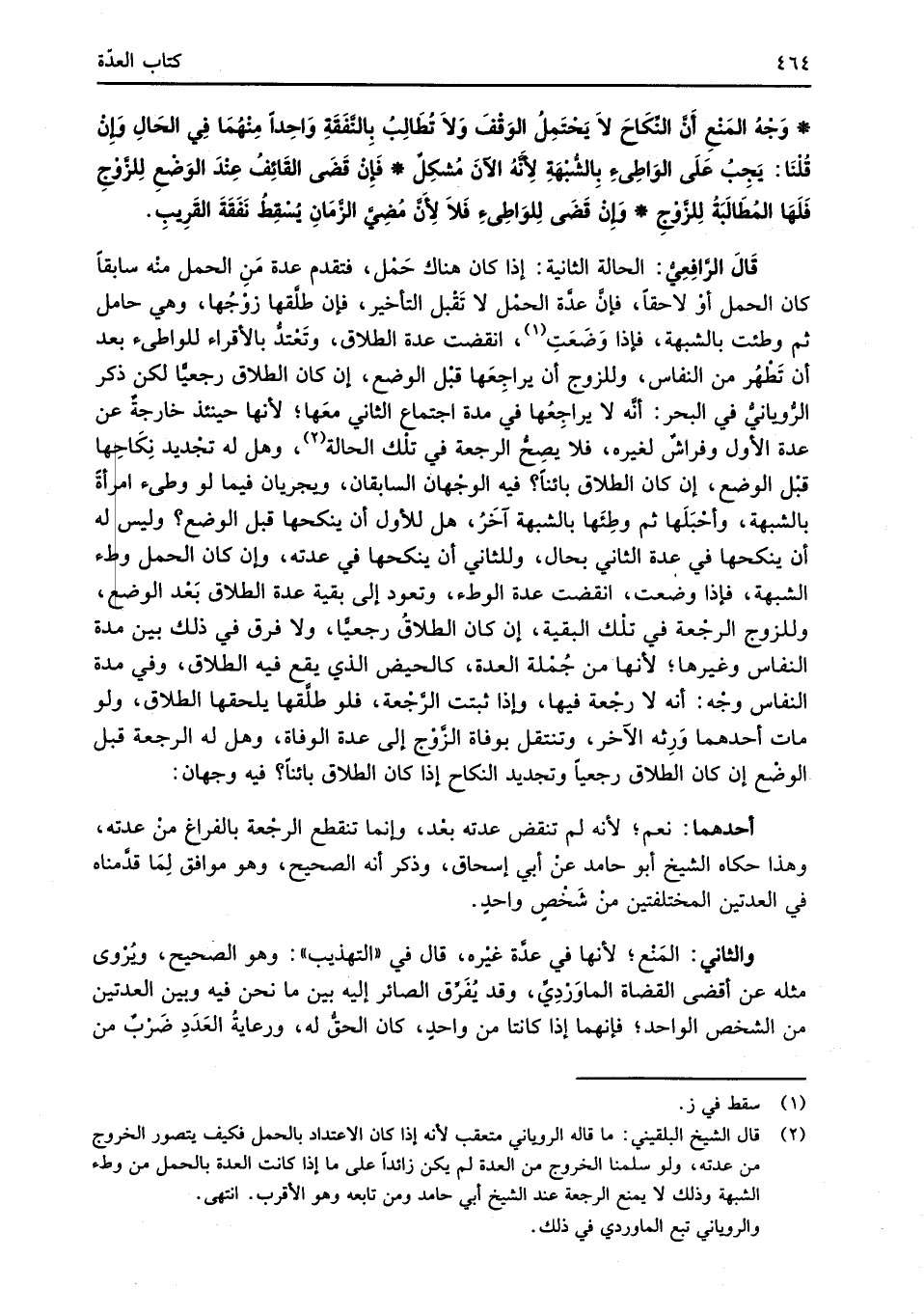 (¬2) قال الشيخ البلقيني: ما قاله الروياني متعقب لأنه إذا كان الاعتداد بالحمل فكيف يتصور الخروج من عدته، ولو سلمنا الخروج من العدة لم يكن زائدًا على ما إذا كانت العدة بالحمل من وطء الشبهة وذلك لا يمنع الرجعة عند الشيخ أبي حامد ومن تابعه وهو الأقرب. انتهى.