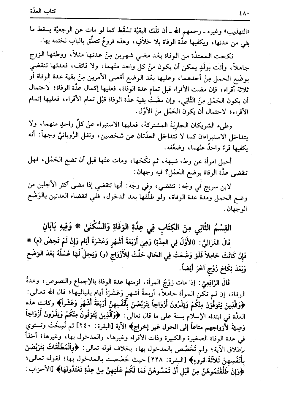 القِسْمُ الثَّانِي مِنَ الكِتَابِ فِي عِدَّةِ الوَفَاةِ وَالسُّكْنَى* وَفِيهِ بَابَانِ