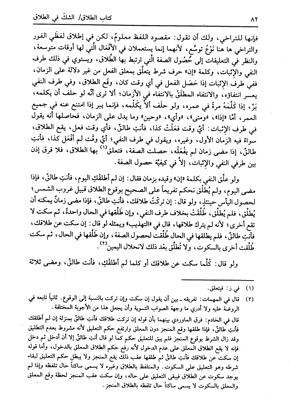 (¬2) قال في المهمات: تفريقه -بين أن يقول إن سكت وإن تركت بالنسبة إلى الوقوع. ثانياً تابعه في الروضة عليه ولا أدري ما وجهة الصواب التسوية وأن يجعل هذا من الأجوبة المختلفة.