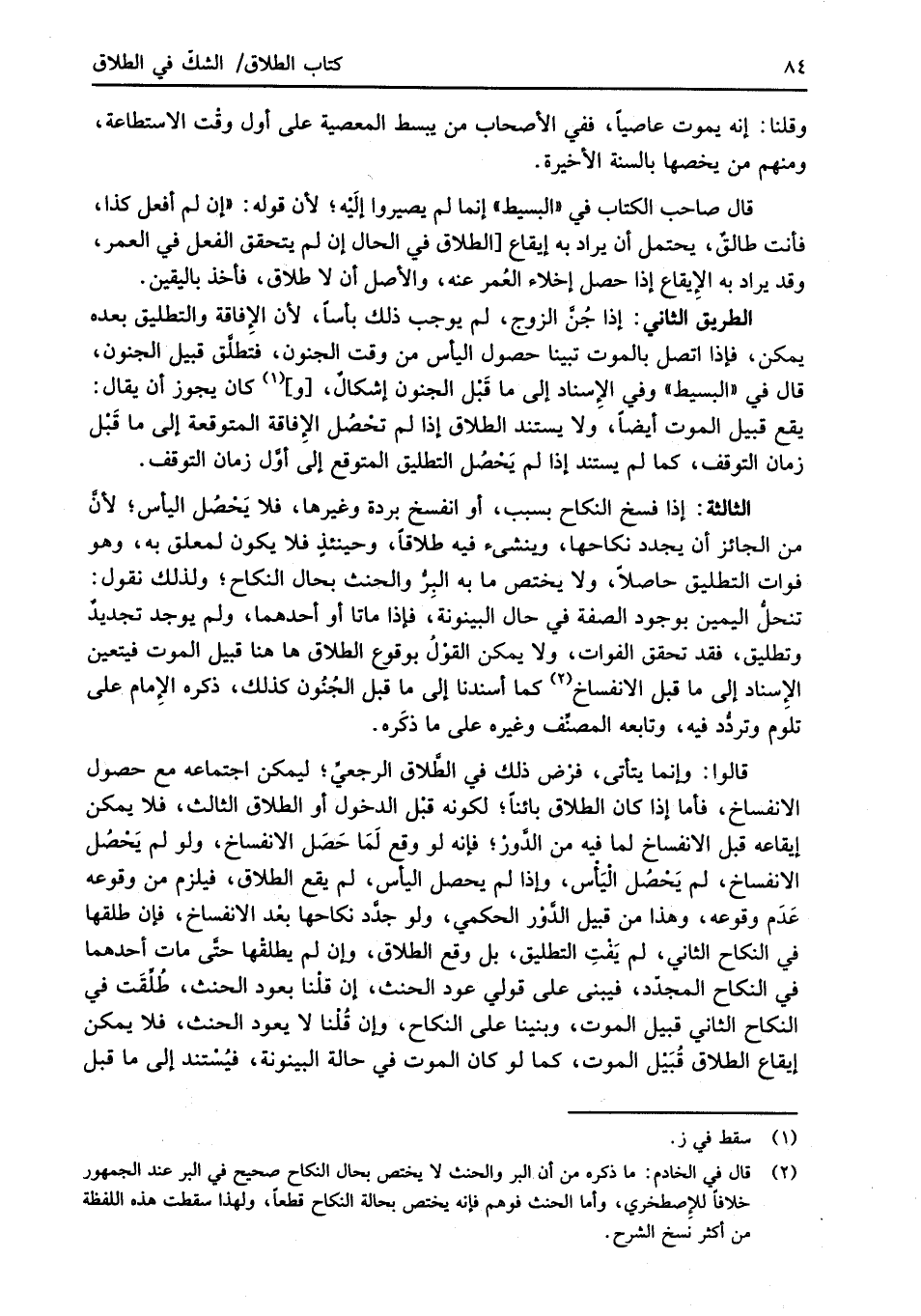 (¬2) قال في الخادم: ما ذكره من أن البر والحنث لا يختص بحال النكاح صحيح في البر عند الجمهور خلافاً للإصطخري، وأما الحنث فوهم فإنه يختص بحالة النكاح قطعاً، ولهذا سقطت هذه اللفظة من أكثر نسخ الشرح.