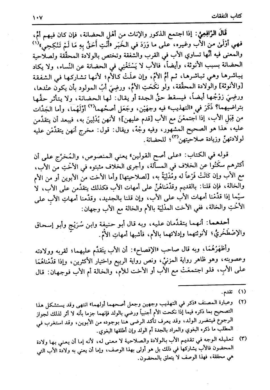 (¬3) تعليله الوجه في تقديم الأب بالولادة والصلاحية لا معنى له؛ لأنه إما أن يعني بها ولادة المحضون فالأب يشاركها في ذلك بل هو أولى بهذا الوصف، وإما أن يعني به ولادة الأب التي هي محققة، فهذا الوصف لا يتعلق بالمحضون.