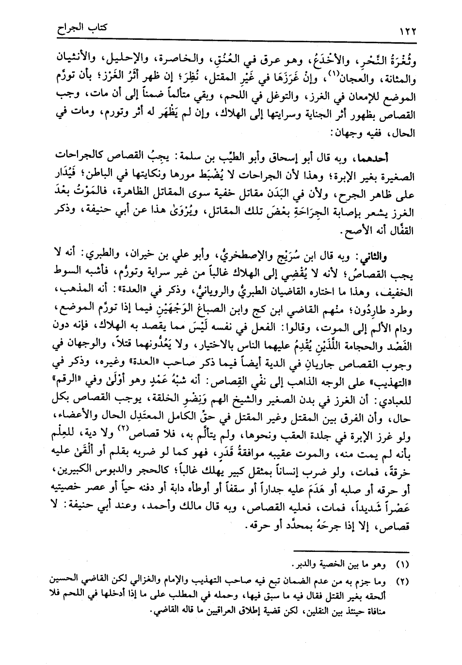(¬2) وما جزم به من عدم الضمان تبع فيه صاحب التهذيب والإمام والغزالي لكن القاضي الحسين ألحقه بغير القتل فقال فيه ما سبق فيها، وحمله في المطلب على ما إذا أدخلها في اللحم فلا منافاة حينئذ بين النقلين، لكن قضية إطلاق العراقيين ما قاله القاضي.