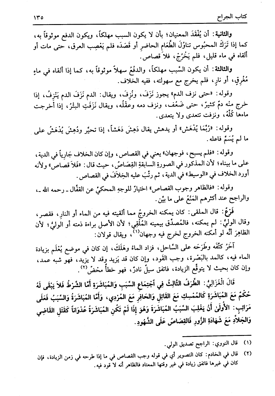 قَالَ الْغَزَالِيُّ: الطَّرَفُ الثَّالِثُ فِي اجْتِمَاعِ السَّبَبِ وَالمُبَاشَرَةِ أمَّا الشَّرْطُ فَلاَ يَبْقَى لَهُ حُكْمٌ مَعَ المُبَاشَرَةِ كَالمُمْسِكِ مَعَ القَاتِلِ وَالحَافِرِ مَعَ المُرْدِي، وَأَمَّا المُبَاشَرَةُ وَالسَّبَبُ فَعَلَى مَرَاتِبٍ: الأُولَى أَنْ يَغْلِبَ السَّبَبُ المُبَاشَرَةَ وَهُوَ إِذَا لَمْ تَكُنِ المُبَاشَرَةُ عُدْوَاناً كقَتْلِ القَاضِي وَالجَلاَّدِ مَعَ شَهَادَةِ الزُّورِ فَالقِصَاصُ عَلَى الشُّهُودِ.