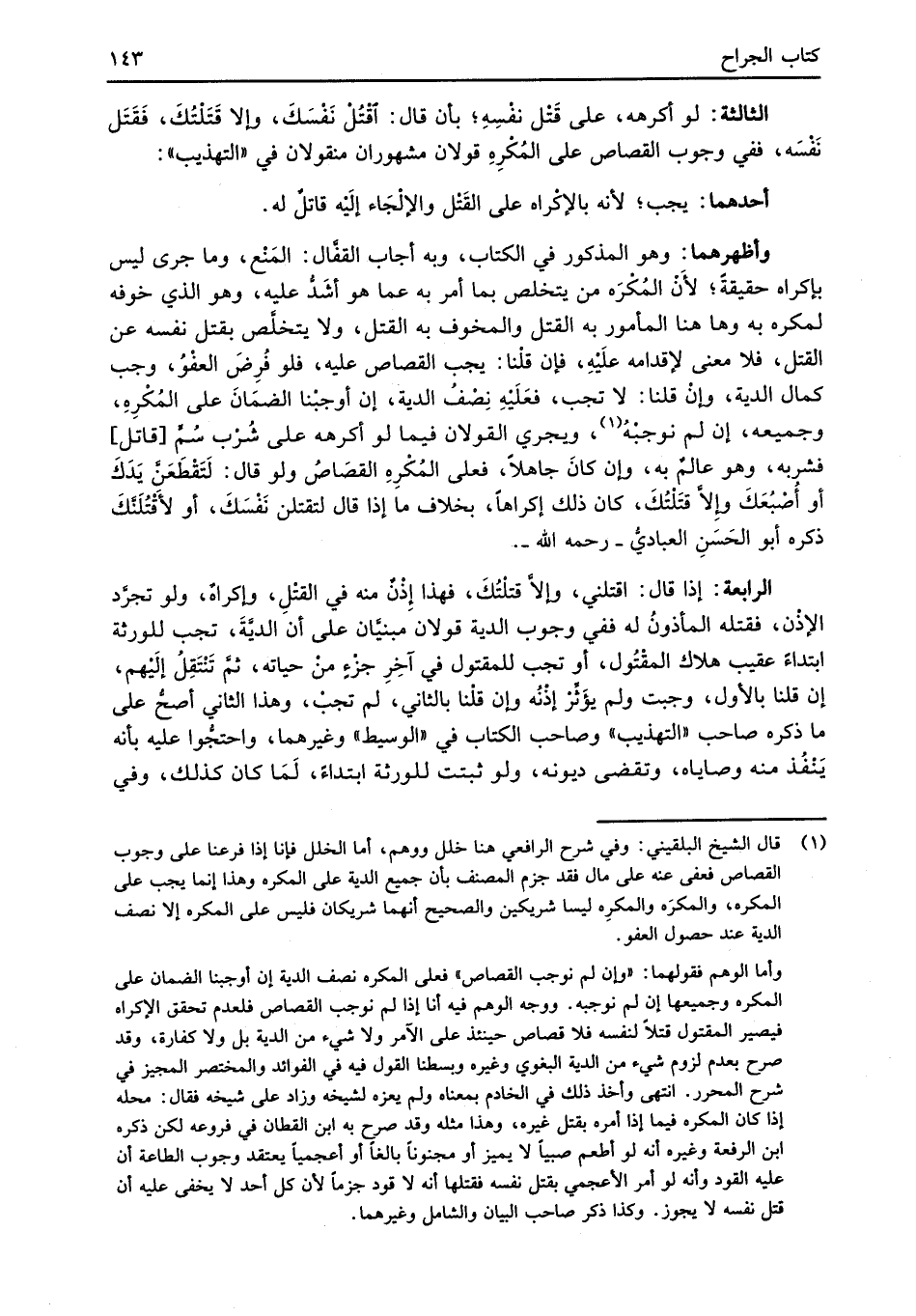 (¬1) قال الشيخ البلقيني: وفي شرح الرافعي هنا خلل ووهم، أما الخلل فإنا إذا فرعنا على وجوب القصاص فعفى عنه على مال فقد جزم المصنف بأن جميع الدية على المكره وهذا إنما يجب على المكره، والمكرَه والمكرِه ليسا شريكين والصحيح أنهما شريكان فليس على المكره إلا نصف الدية عند حصول العفو.