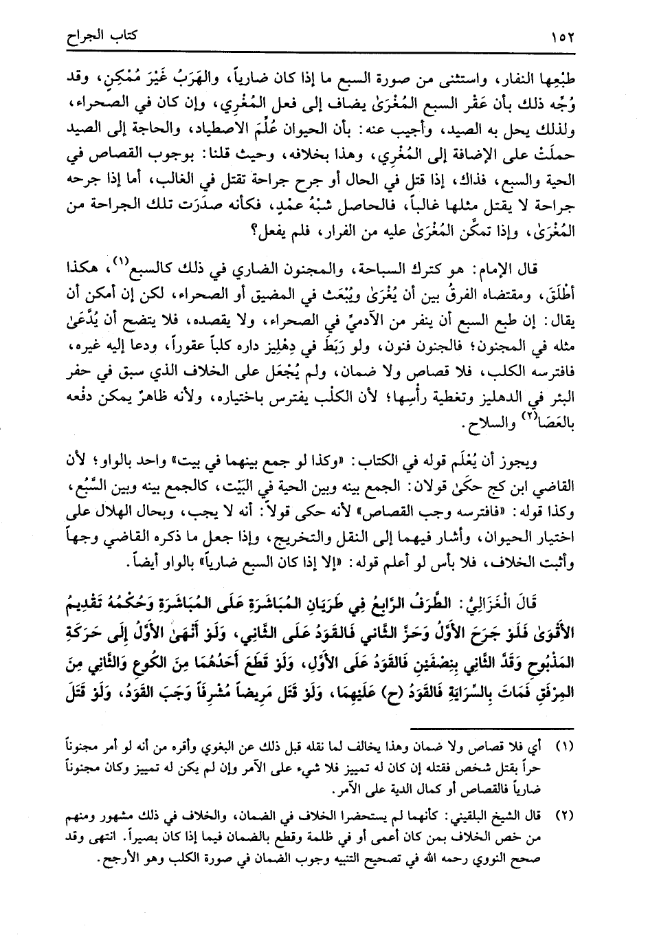 طبْعِها النفار، واستثنى من صورة السبع ما إذا كان ضارياً، والهَرَبُ غَيرَ مُمْكِنٍ، وقد وُجِّه ذلك بأن عَقْر السبع المُغْرَى يضاف إلى فعل المُغْرِي، وإن كان في الصحراء، ولذلك يحل به الصيد، وأجيب عنه: بأن الحيوان عُلِّمَ الاصطياد، والحاجة إلى الصيد حملَتْ على الإضافة إلى المُغْرِي، وهذا بخلافه، وحيث قلنا: بوجوب القصاص في الحية والسبع، فذاك، إذا قتل في الحال أو جرح جراحة تقتل في الغالب، أما إذا جرحه جراحة لا يقتل مثلها غالباً، فالحاصل شبْهُ عمْدٍ، فكأنه صدَرَت تلك الجراحة من المُغْرَى، وإذا تمكَّن المُغْرَى عليه من الفرار، فلم يفعل؟