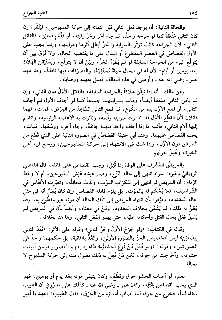 والحالة الثانية: أن يوجد فعل الثاني قبْل انتهائه إلى حركة المذبوحين، فيُنْظَر؛ إن كان الثاني مُذْففًا كما لو جرحه واحدٌ، ثم جاء آخر وحَزَّ رقبته، أو قَدَّهُ بِنصفَيْن، فالقاتل الثاني؛ لأن الجراحة كانَتْ تؤثِّر بالسراية والحَزُّ أبطل أثرها ومرايتها، وإنما يجب على الأول القصاصُ في العضْو المقطوعَ أو المال على ما يقتضيه الحال، ولا فَرْقَ بين أن يَتوقَّع البرء من الجراحة السابقة لو لم يَطْرَأ الحَزُّ، وبيْنَ أنَّ لا يَتوقَّع، ويسْتَيْقن الهَلاَك بعد يومين أو أيام؛ لأن له في الحال حياةً مُسْتَقِرَّةً، والتصرّفات فيها نافذةٌ، وقد عهد عمر -رضي الله عنه- وأوصى في هذه الحالة، فعمل بعهده ووصاياه.