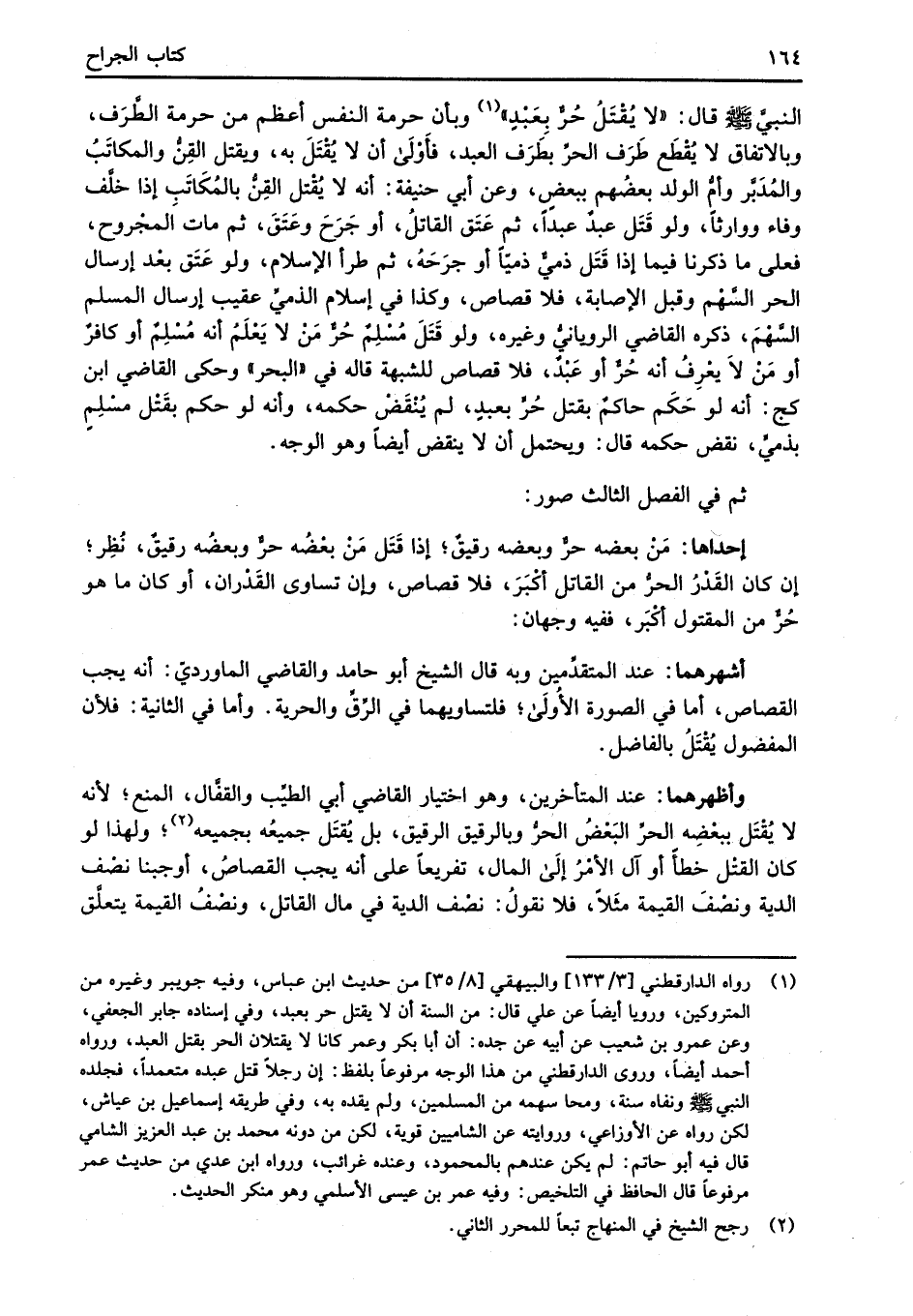 أشهرهما: عند المتقدِّمين وبه قال الشيخ أبو حامد والقاضي الماورديّ: أنه يجب القصاص، أما في الصورة الأُولَى؛ فلتساويهما في الرِّقِّ والحرية. وأما في الثانية: فلأن المفضول يُقْتَلُ بالفاضل.