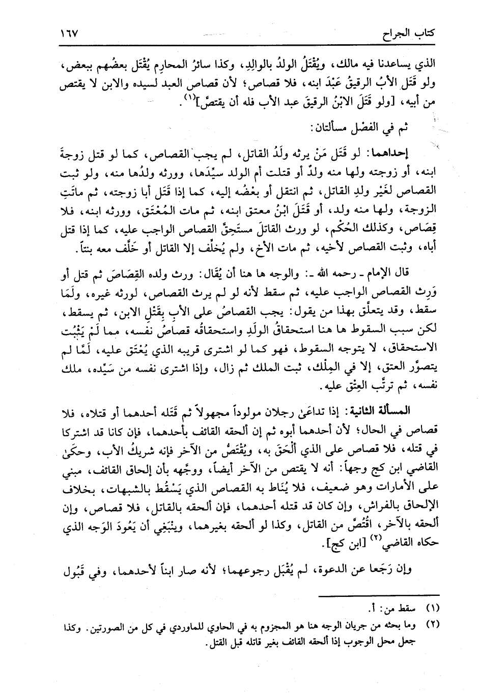 الذي يساعدنا فيه مالك، ويُقْتَلُ الولدُ بالوالِدِ، وكذا سائرُ المحارِم يُقْتَل بعضُهم ببعض، ولو قَتَل الأبُ الرقيقُ عَبْدَ ابنه، فلا قصاص العبد لأن قصاص العبد لسيده والابن لا يقتص من أبيه، [ولو قَتَلَ الابْنُ الرقيقَ عبد الأب فله أن يقتصَّ] (¬1).