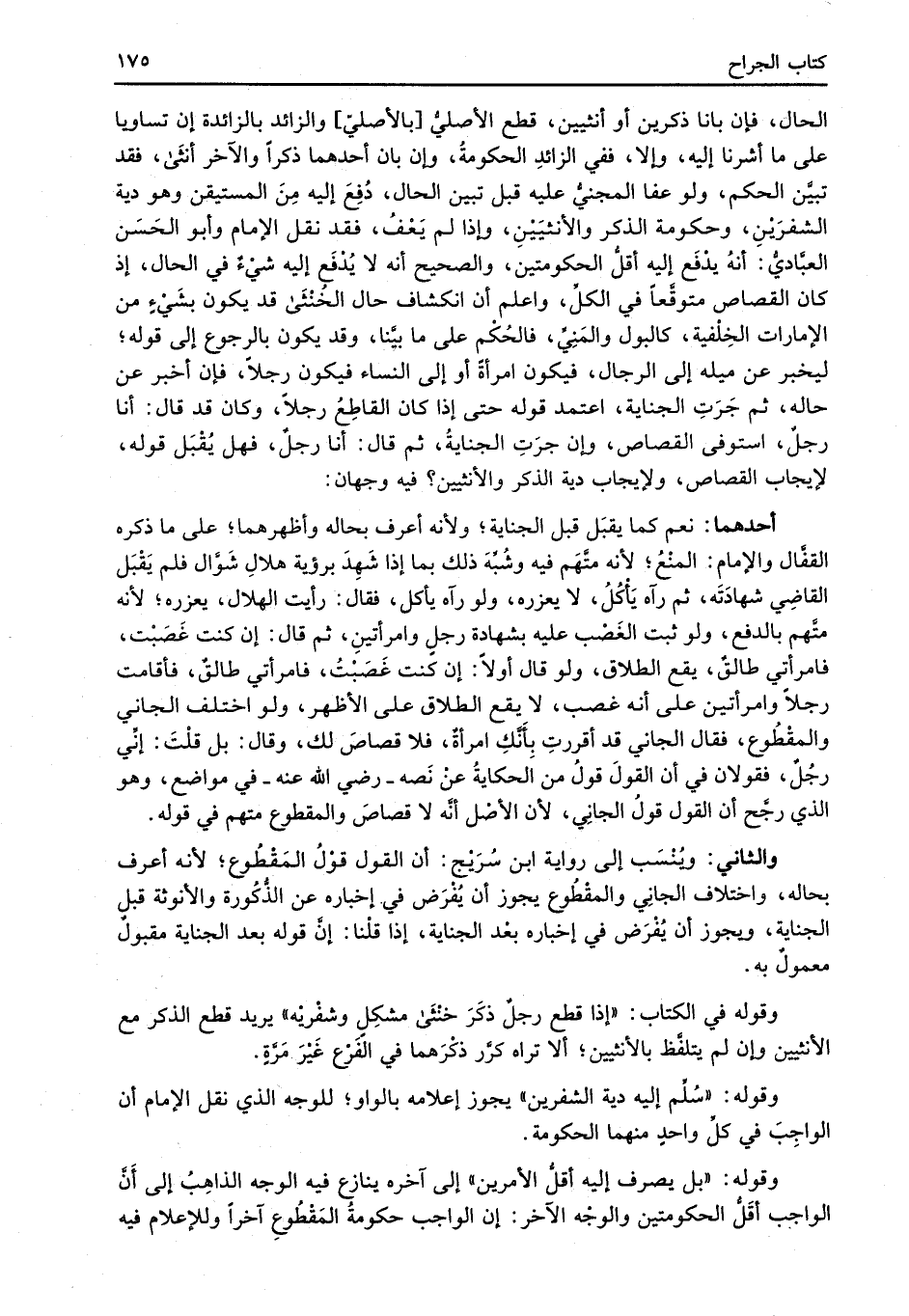 والثاني: ويُنْسَب إلى رواية ابن سُرَيْج: أن القول قوْلُ المَقْطُوع؛ لأنه أعرف بحاله، واختلاف الجانِي والمقْطُوع يجوز أن يُفْرَض في. إخباره عن الذُّكُورة والأنوثة قبل الجناية، ويجوز أن يُفْرَض في إخباره بعْد الجناية، إذا قلْنا: إنَّ قوله بعد الجناية مقبولٌ معمولٌ به.