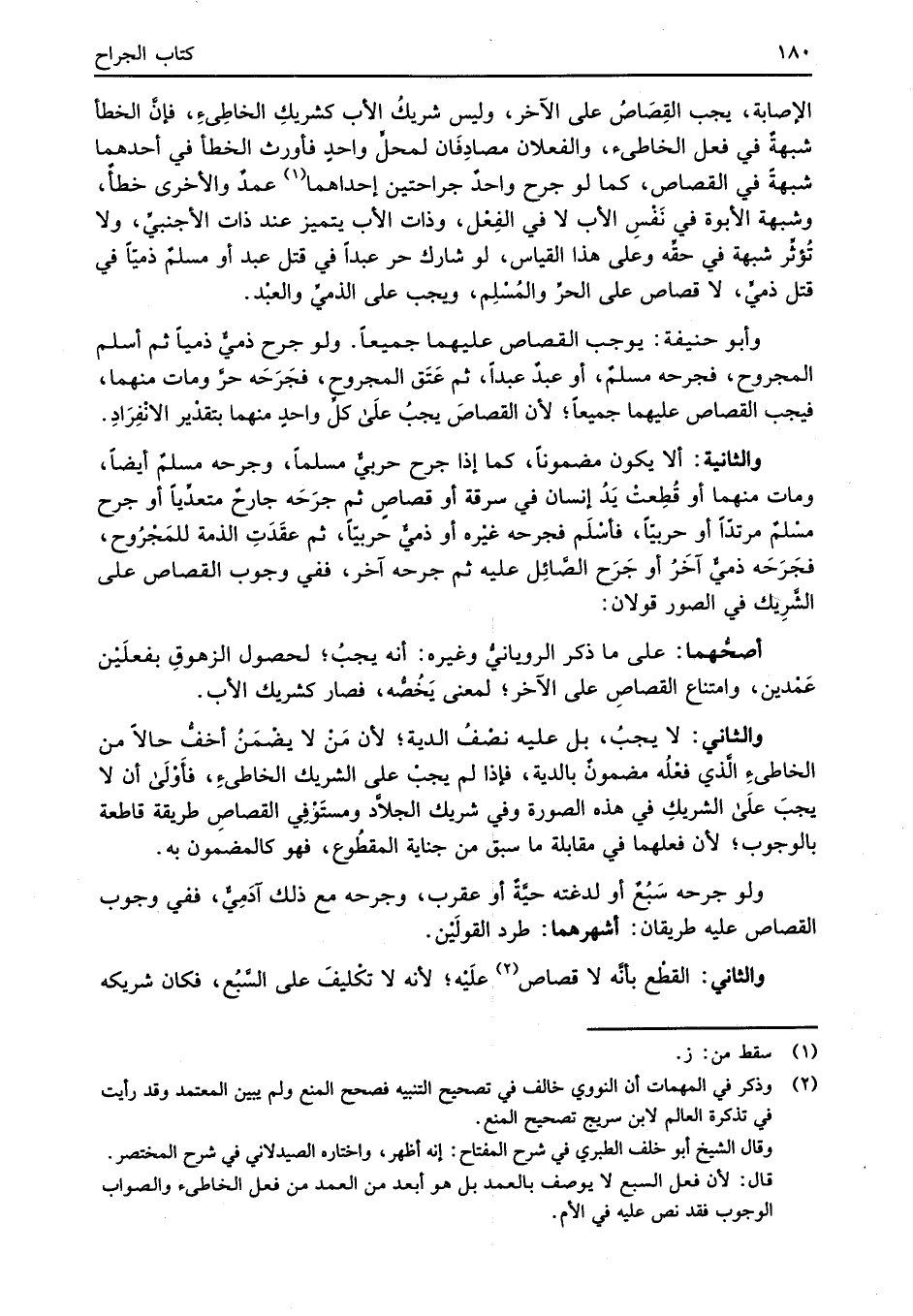 والثاني: لا يجبُ؛، بل عليه نصْفُ الدية؛ لأن مَنْ لا يضْمَنُ أخفُّ حالاً من الخاطئِ الَّذي فعْلُه مضمونٌ بالدية، فهذا لم يجبْ على الشريك الخاطئِ، فأَوْلَى أن لا يجبَ عَلَى الشريكِ في هذه الصورة وفي شريك الجلاَّد ومستَوْفِي القصاصِ طريقة قاطعة بالوجوب؛ لأن فعلهما في مقابلة ما سبق من جناية المقطُوع، فهو كالمضمون به.