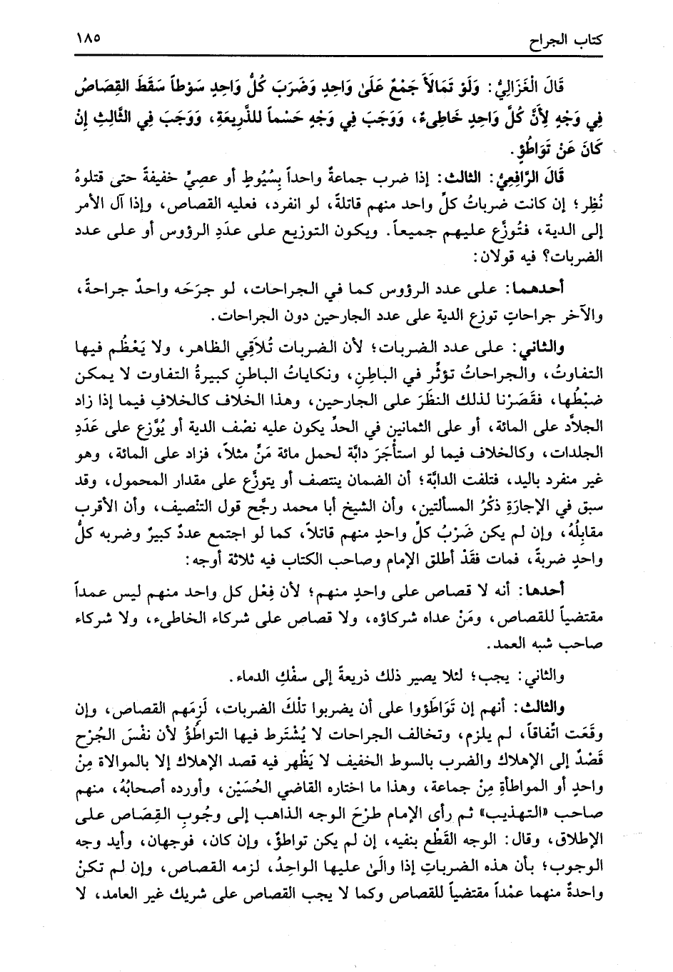 والثالث: أنهم إن تَوَاطَؤوا على أن يضربوا تلْكَ الضربات، لَزِمَهم القصاص، وإن وقَعَت اتِّفاقاً، لم يلزم، وتخالف الجراحات لا يُشْتَرط فيها التواطُؤُ لأن نفْسَ الجُرْح قَصْدٌ إلى الإهلاك والضرب بالسوط الخفيف لا يَظْهر فيه قصد الإهلاك إلا بالموالاة مِنْ واحدٍ أو المواطأةِ مِنْ جماعة، وهذا ما اختاره القاضي الحُسَيْن، وأورده أصحابُهُ، منهم صاحب "التهذيب" ثم رأى الإِمام طرْحَ الوجه الذاهب إلى وجُوبِ القِصَاص على الإطلاق، وقال: الوجه القَطْع بنفيه، إن لم يكن تواطؤٌ، وإن كان، فوجهان، وأيد وجه الوجوب؛ بأن هذه الضرباتِ إذا والَى عليها الواحِدُ، لزمه القصاص، وإن لم تكنْ واحدةٌ منهما عمْداً مقتضيًا للقصاص وكما لا يجب القصاص على شريك غير العامد، لا